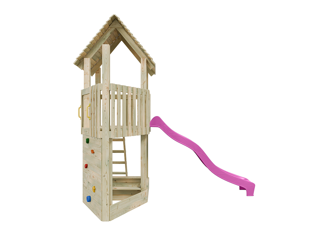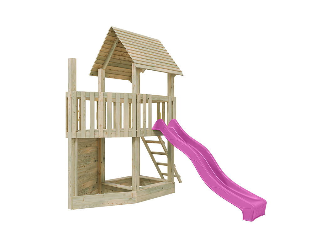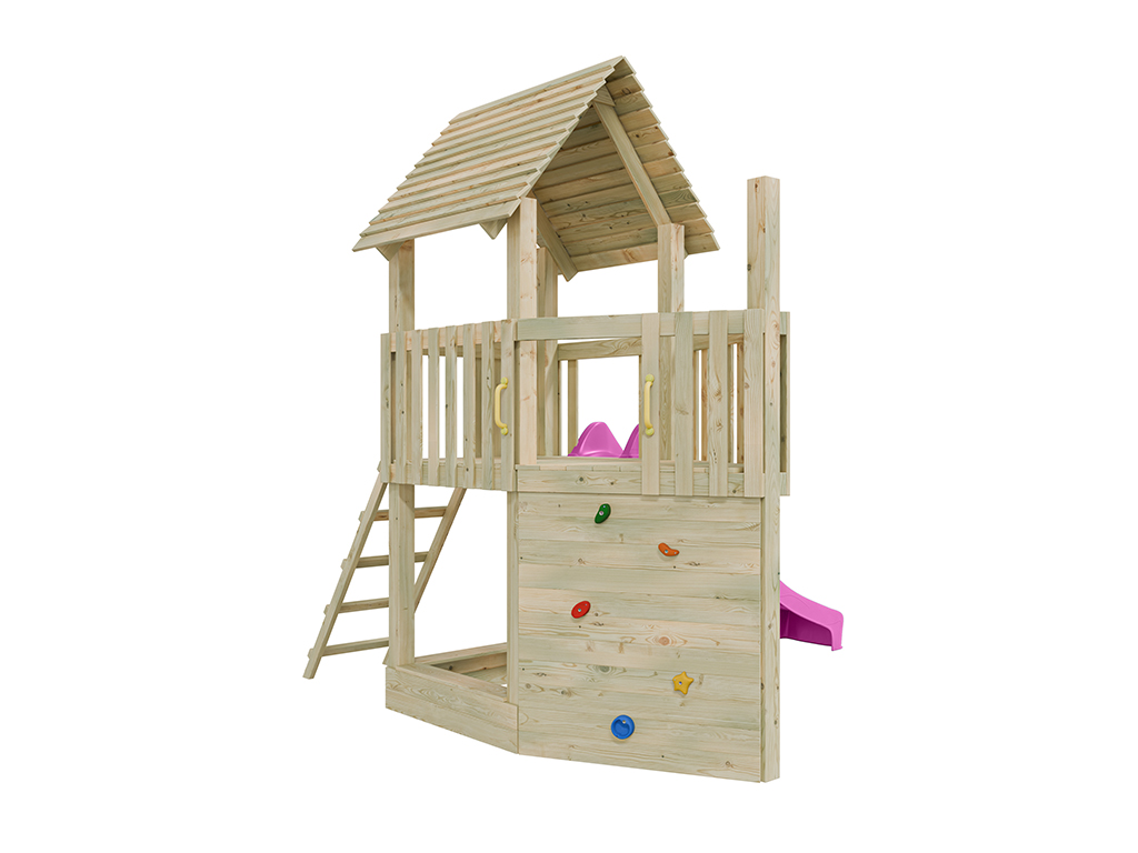 Aire de jeu en bois autoclave Ship Tower avec toboggan rose