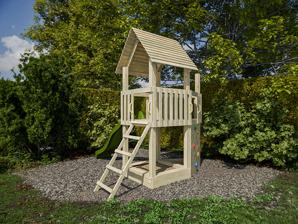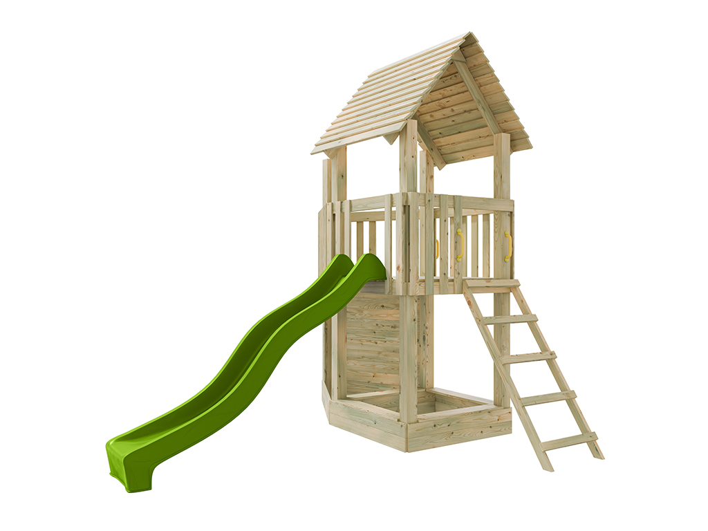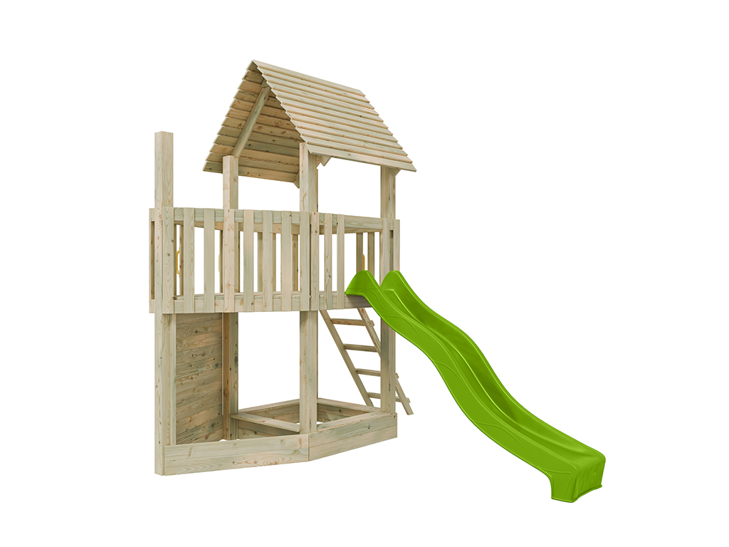 Aire de jeu en bois autoclave Ship Tower avec toboggan vert