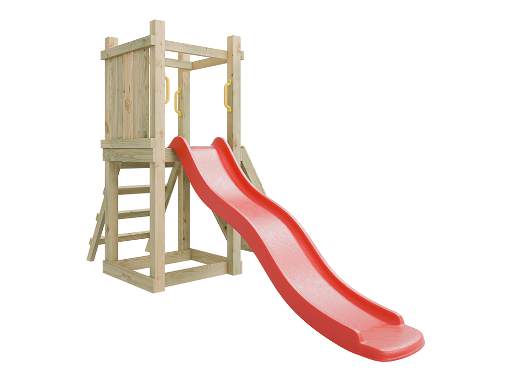 Aire de jeu Junior Two en bois autoclave avec toboggan rouge
