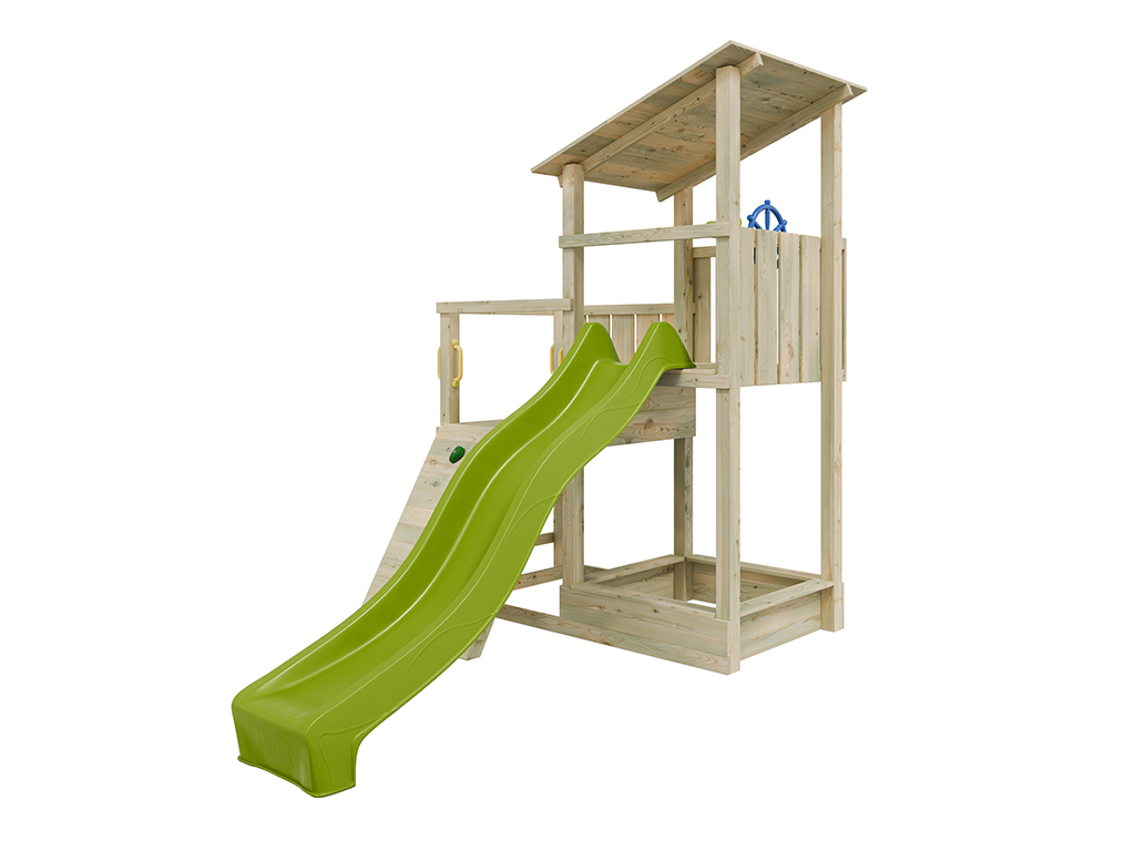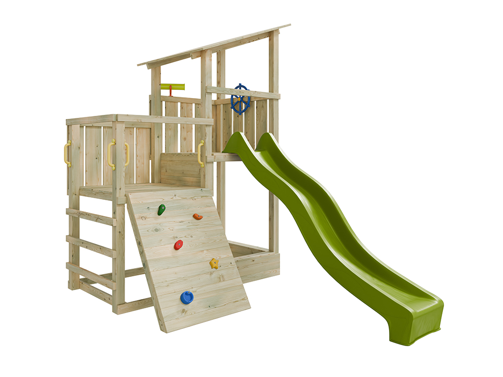 Aire de jeux en bois autoclave Big Pirate avec toboggan vert