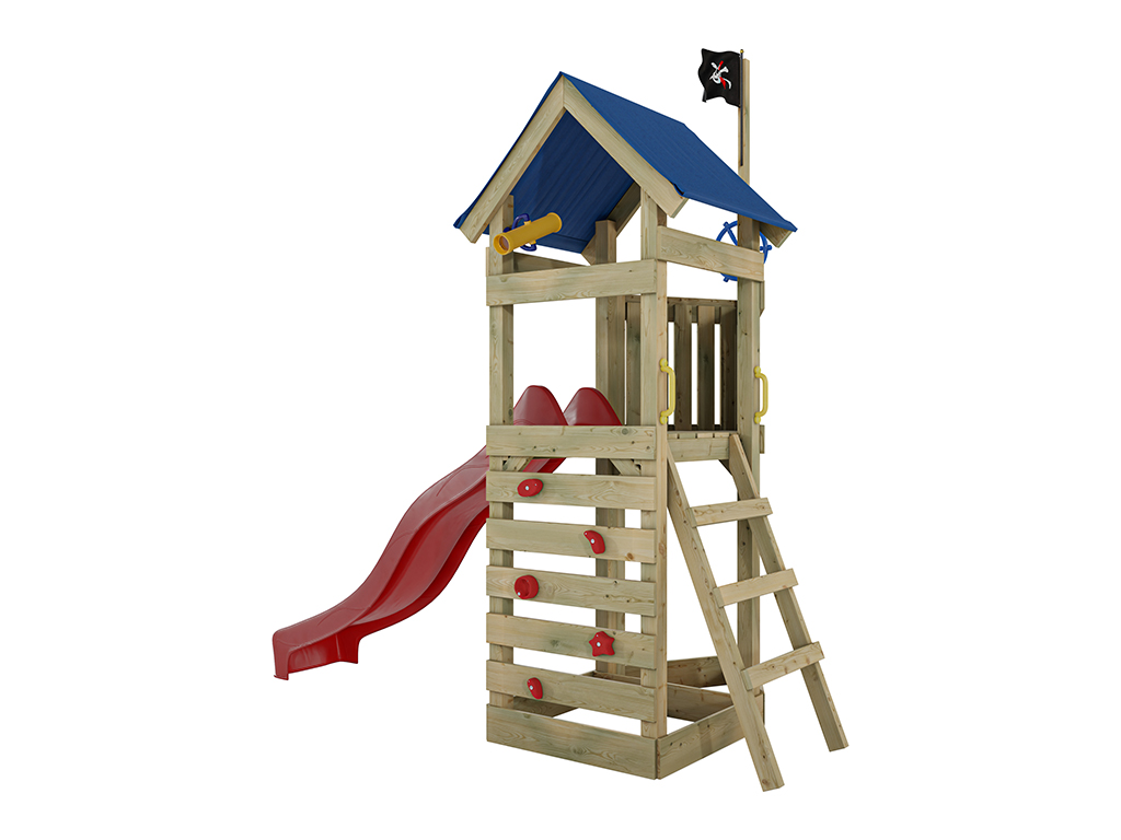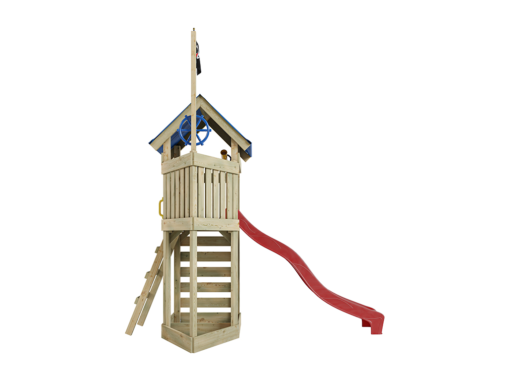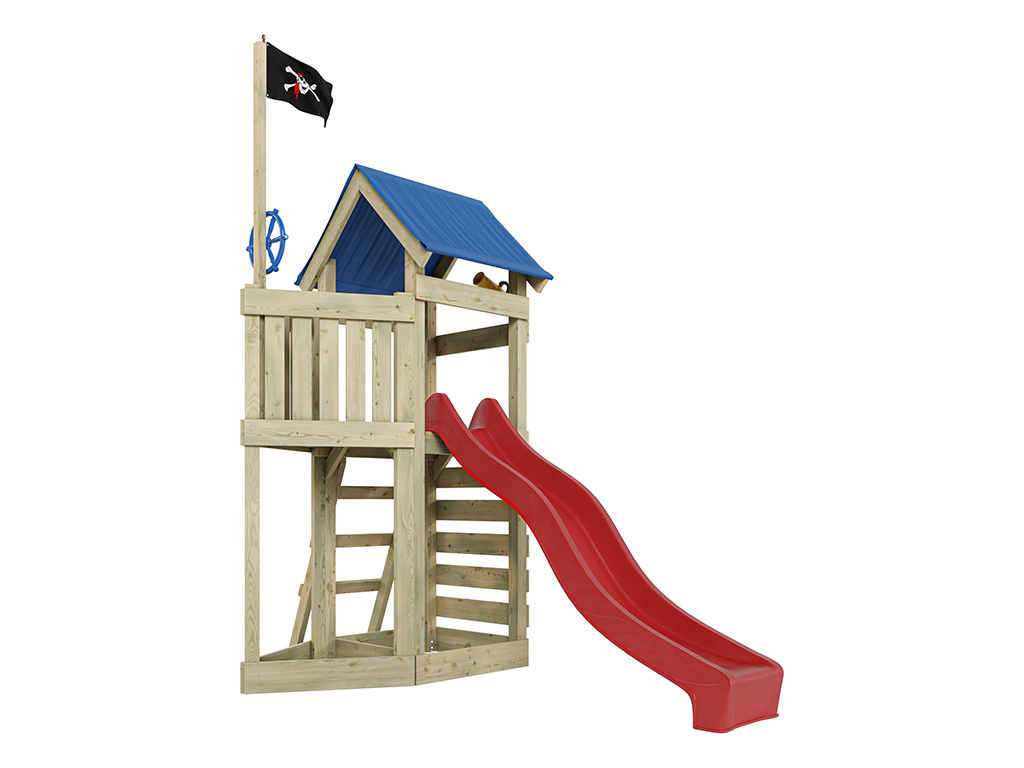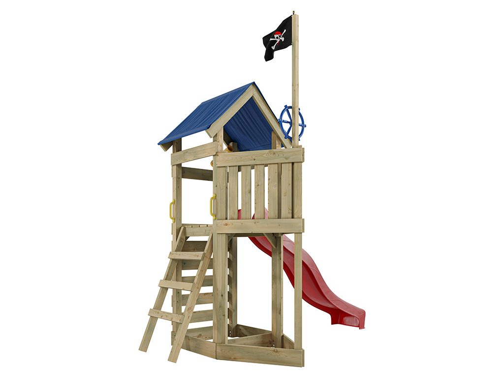 Aire de jeux Pirate Captain Jolly en bois autoclave avec toboggan rouge