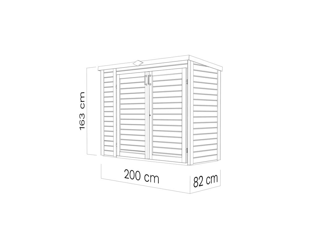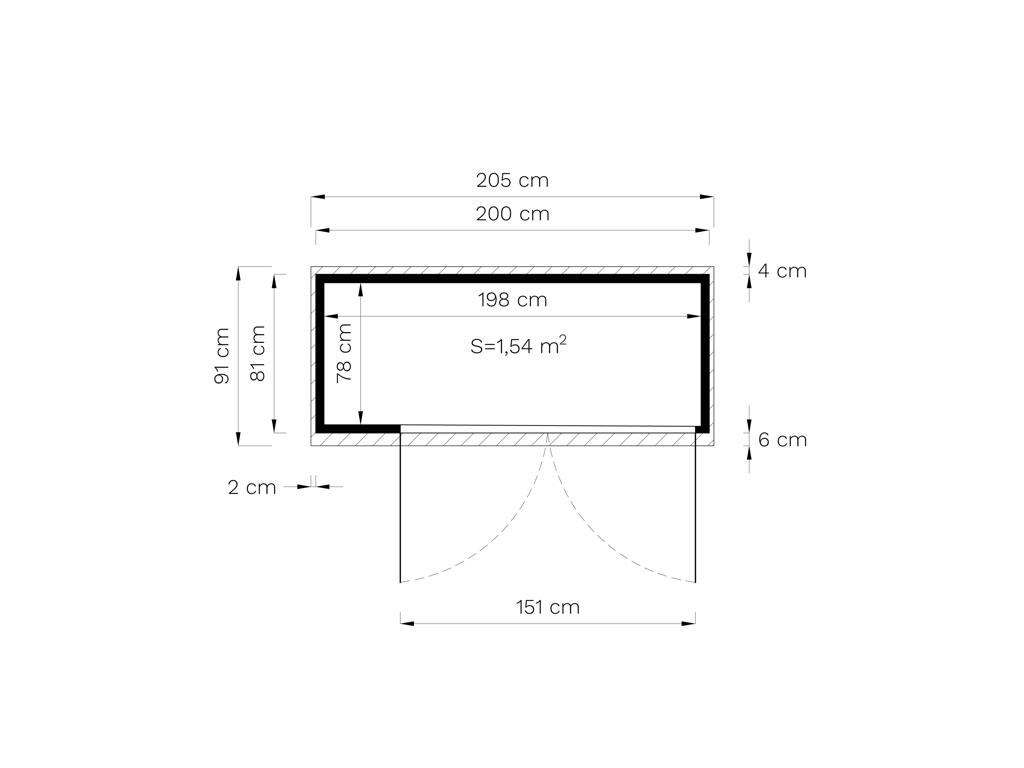 L x P x H : 205 x 91 x 163 cm, dimensions de base : 200 x 82 cm, avec plancher