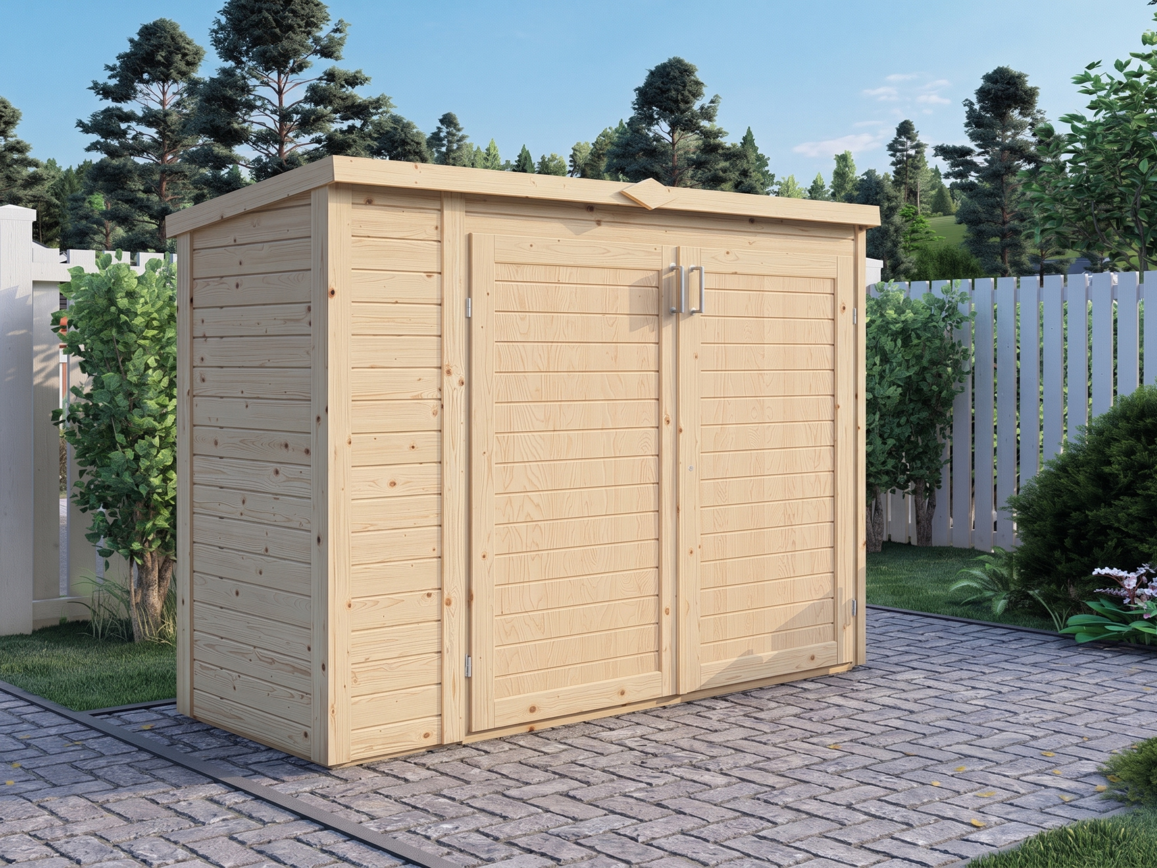 Le bois non traité donne un aspect naturel et intemporel et vous permet en plus darranger lextérieur de labri de jardin selon vos propres souhaits.