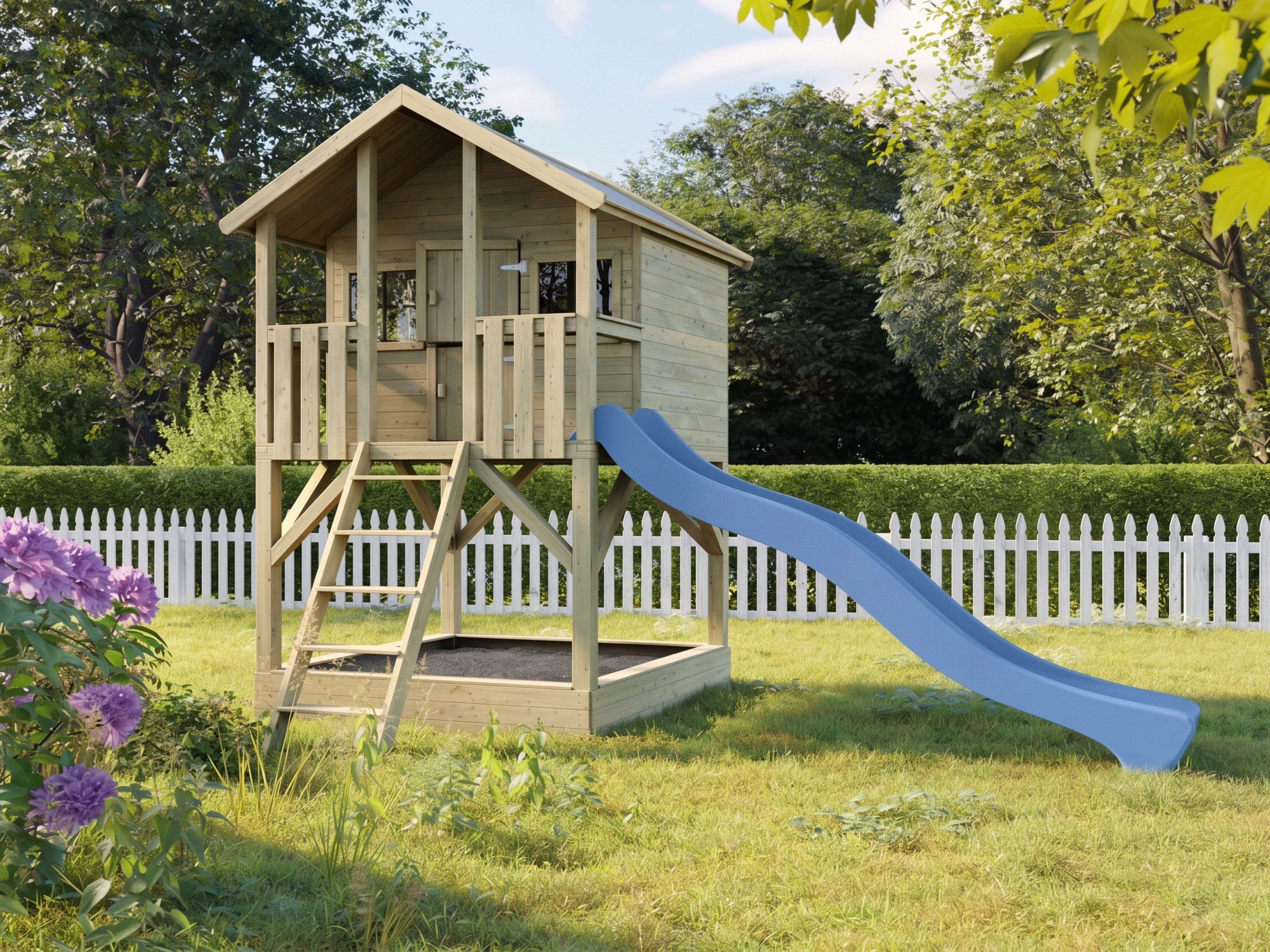 Cabane de jardin sur pilotis Big House avec bac à sable KDI incl. toboggan bleu