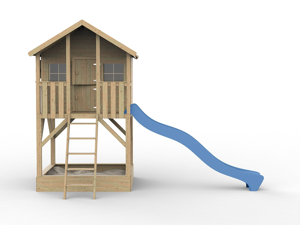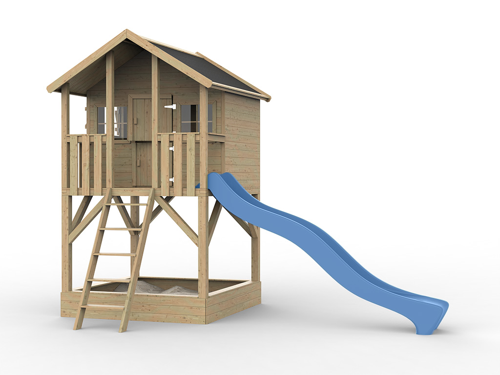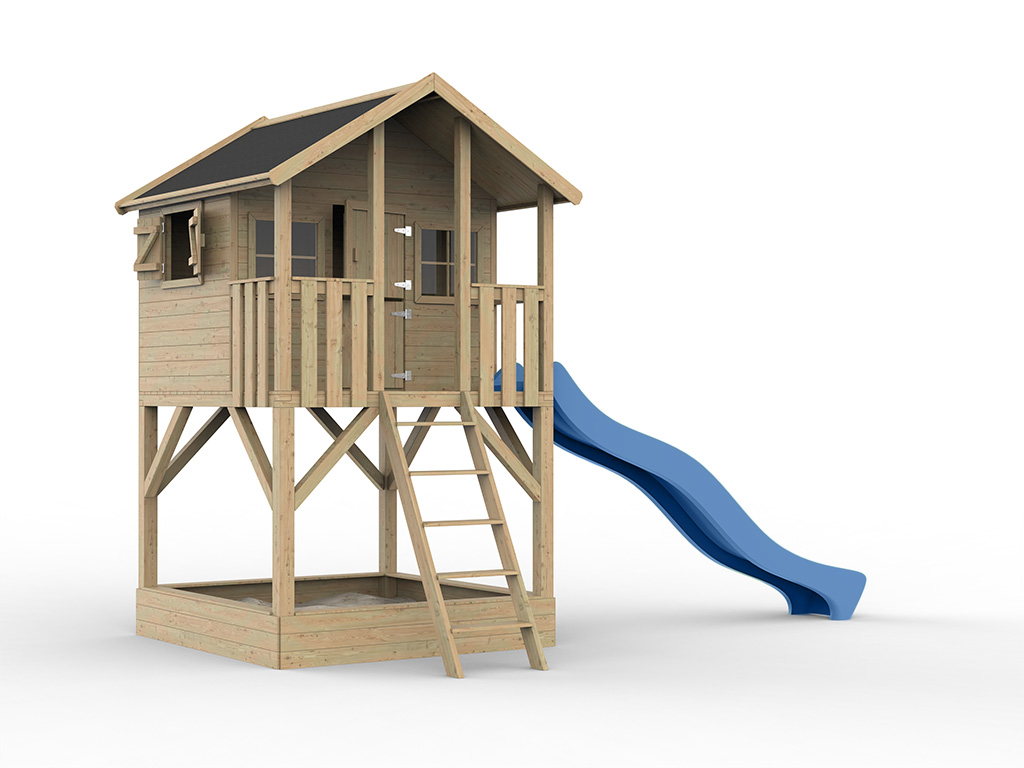 Cabane sur pilotis en bois autoclave avec toboggan bleu “Leon” Cabane sur pilotis en bois autoclave avec...