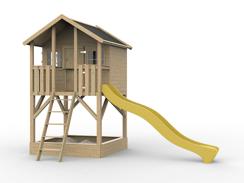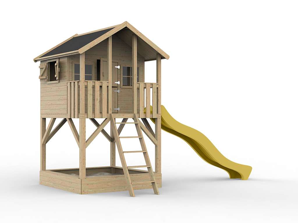 Cabane de jardin sur pilotis Big House avec bac à sable KDI y compris toboggan jaune