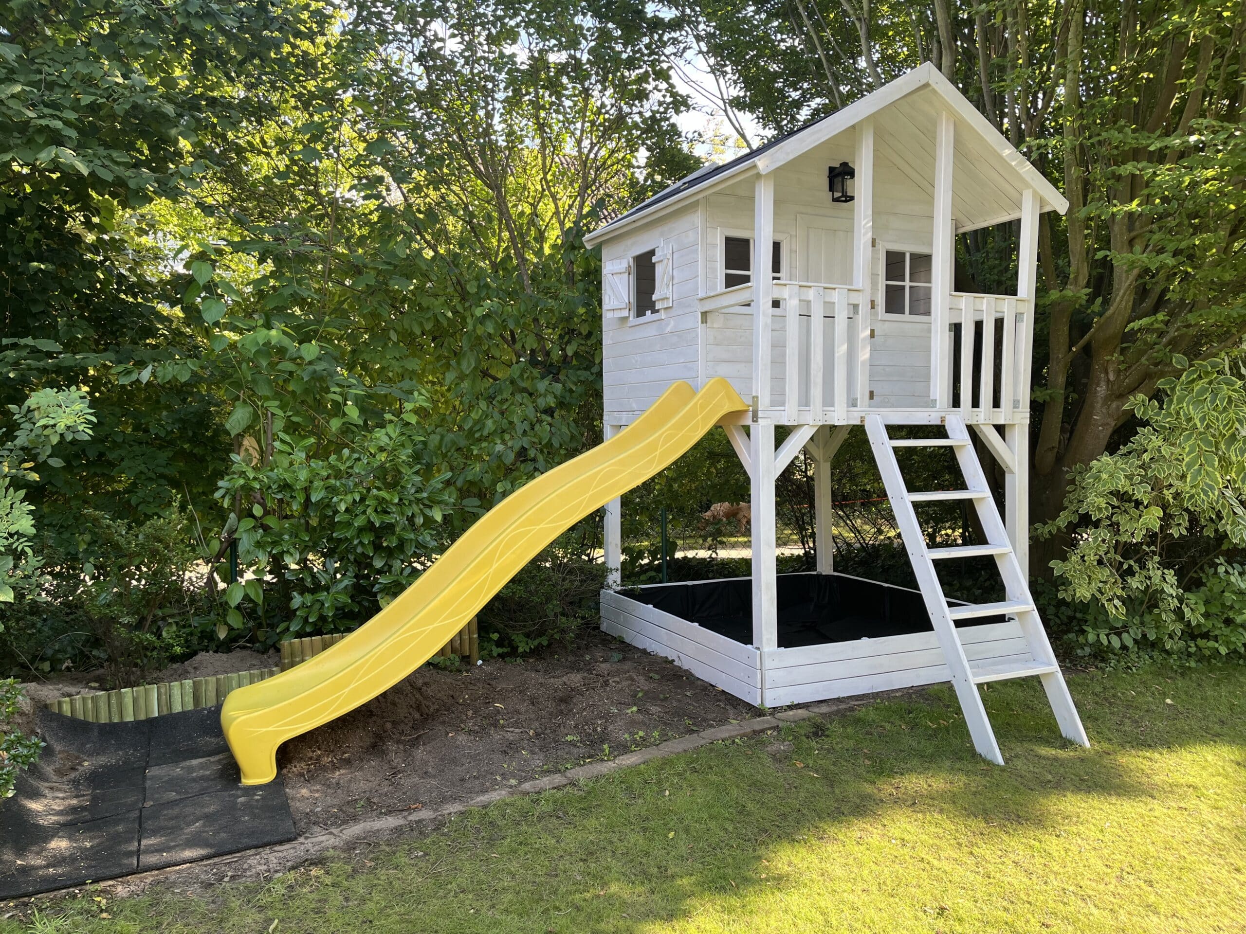 Commentaires client pour "Cabane de jardin sur pilotis Big House avec bac à sable KDI y compris toboggan jaune"