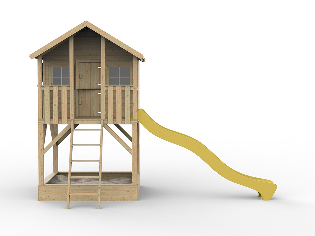 Prestige Garden Cabane de jardin sur pilotis « Big House avec bac à sable » imprégnée en autoclave incl. toboggan inclus.