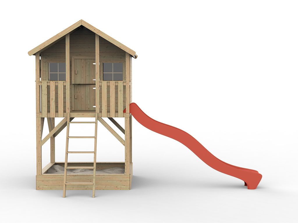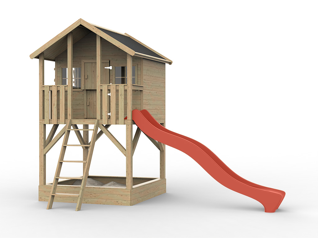 | Contenu de la livraison: | Maisonnette sur pilotis Big House, échelle, volets, instructions de montage détaillées, bac à sable, toboggan rouge |