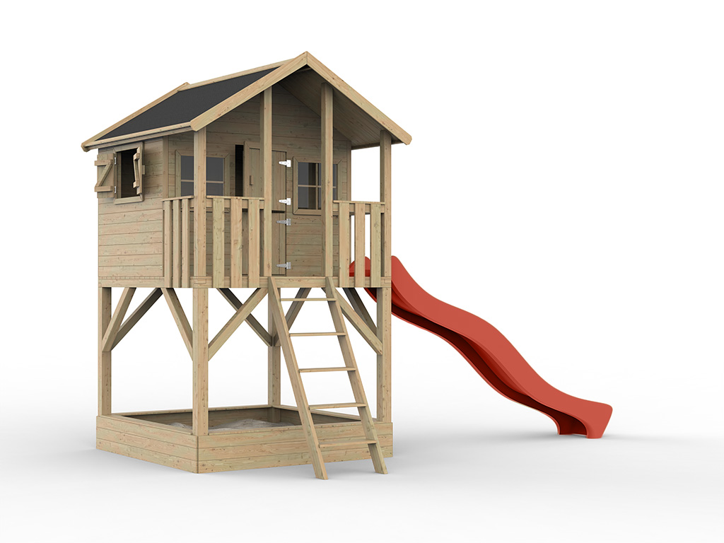 Cabane de jardin sur pilotis Big House avec bac à sable KDI y compris toboggan rouge