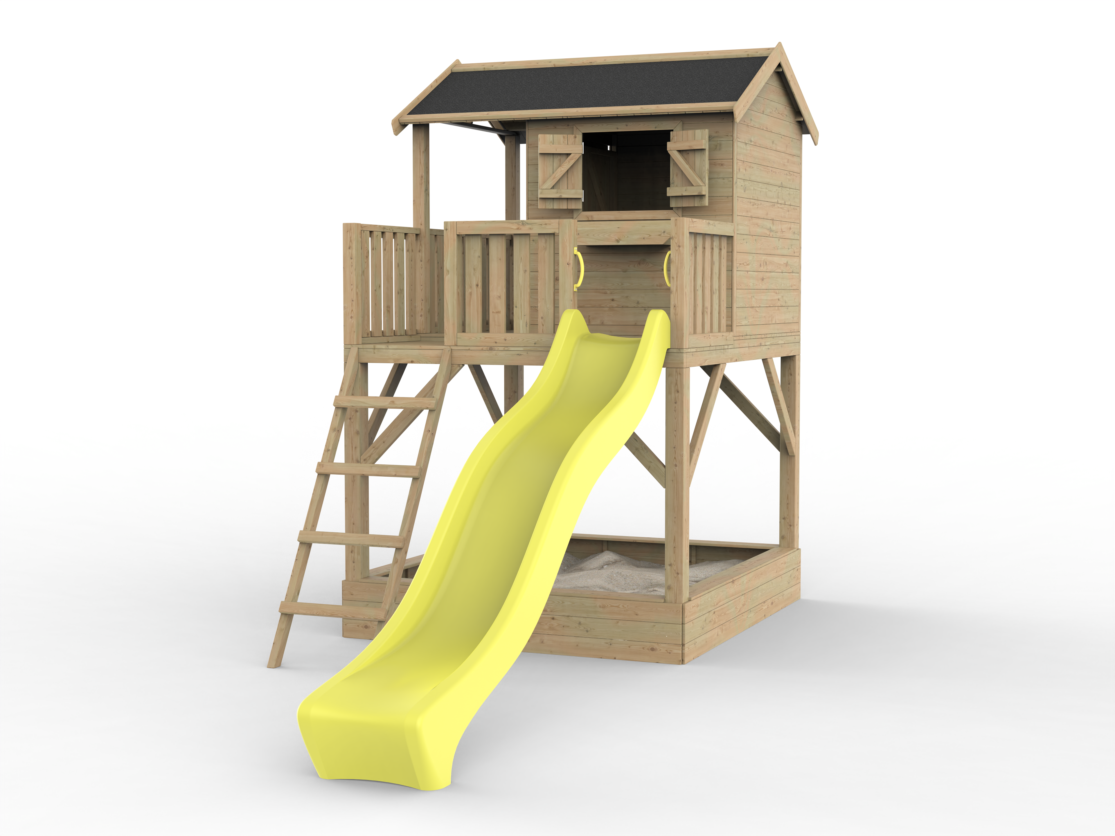 Cabane de jardin sur pilotis Funny XXL avec bac à sable incl. toboggan jaune