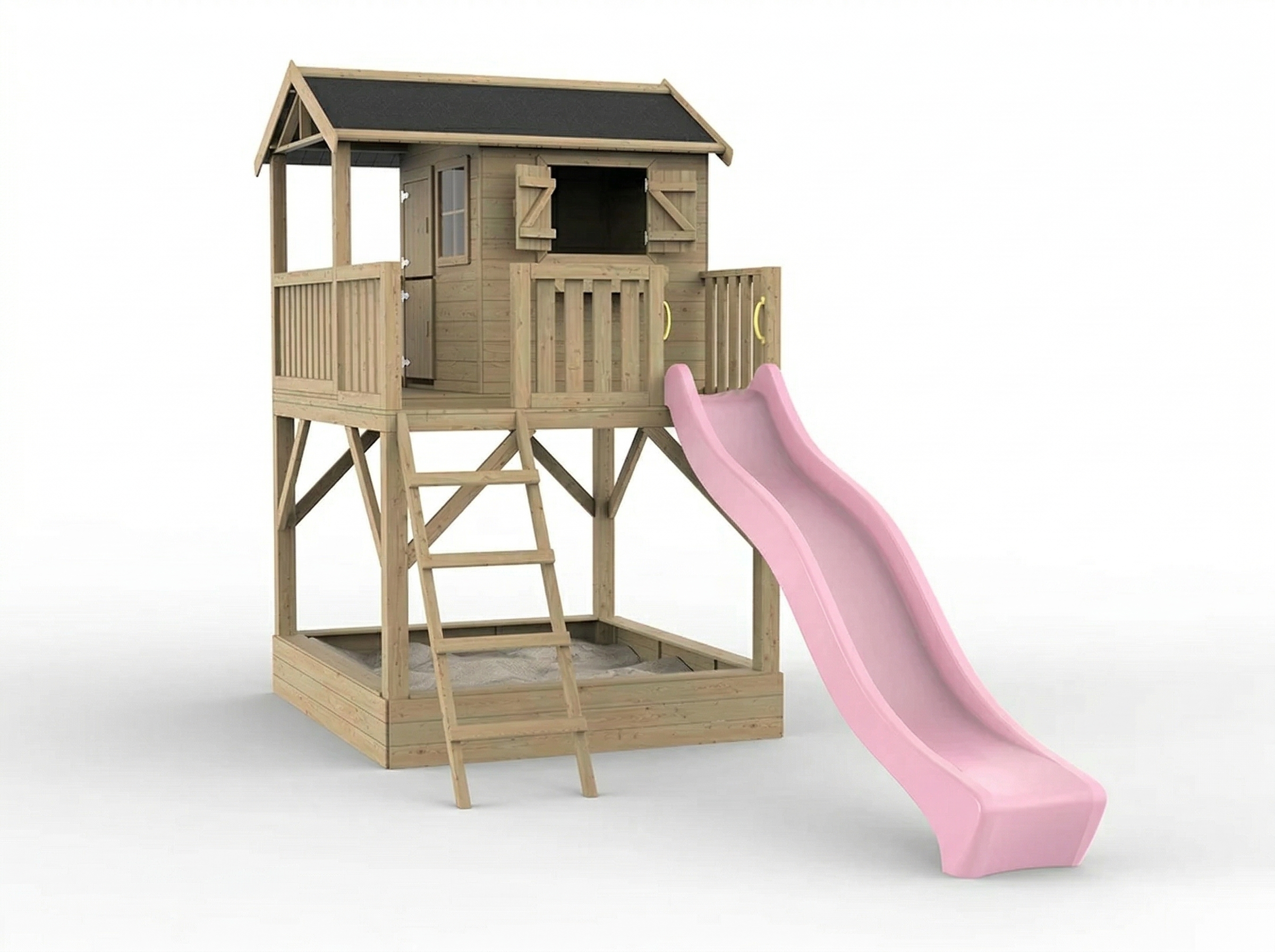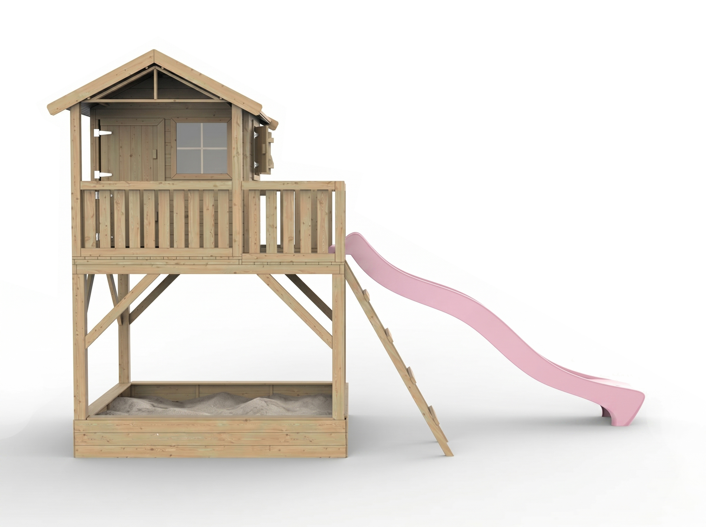 Cabane de jardin sur pilotis Funny XXL avec bac à sable KDI incl. toboggan rose