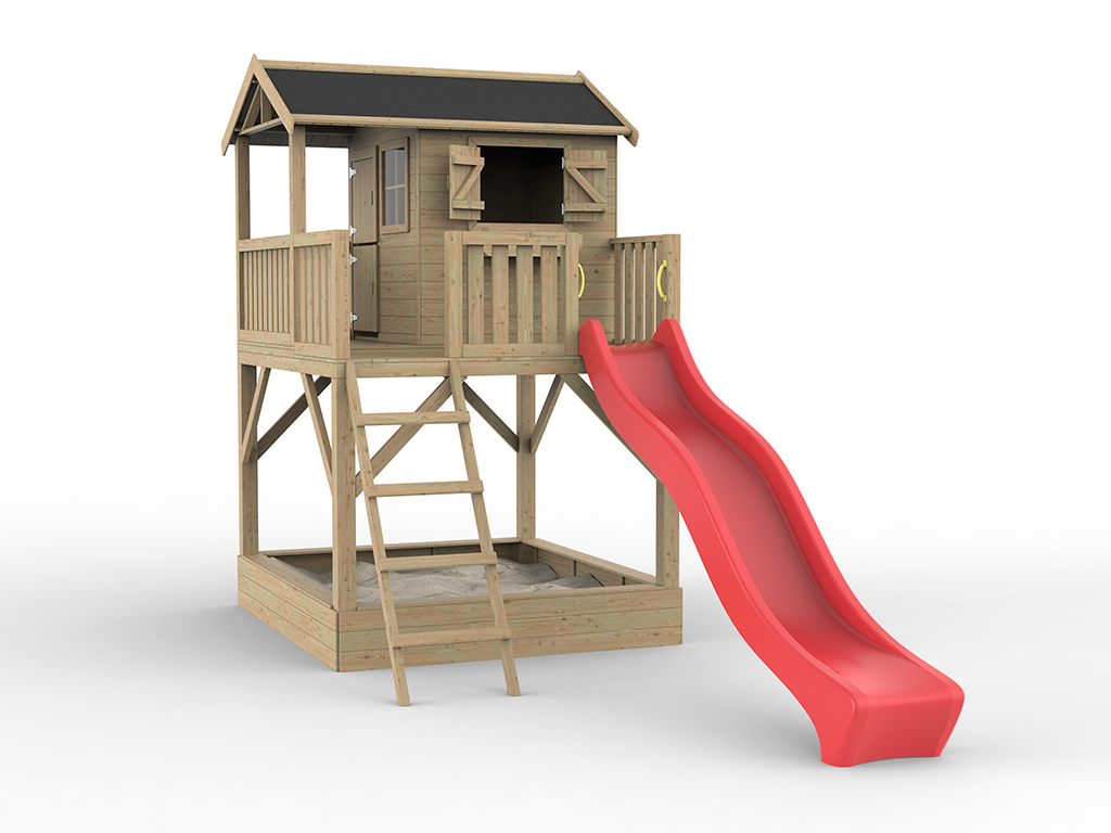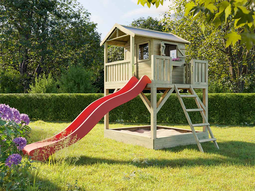 SET ÉCONOMIE Prestige Garden cabane de jardin sur pilotis « Funny XXL » kdi cabane de jardin sur pilotis « Funny XXL » kdi y compris toboggan rouge et bac à sable