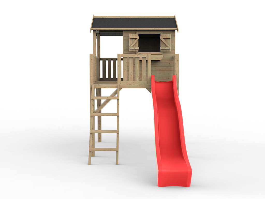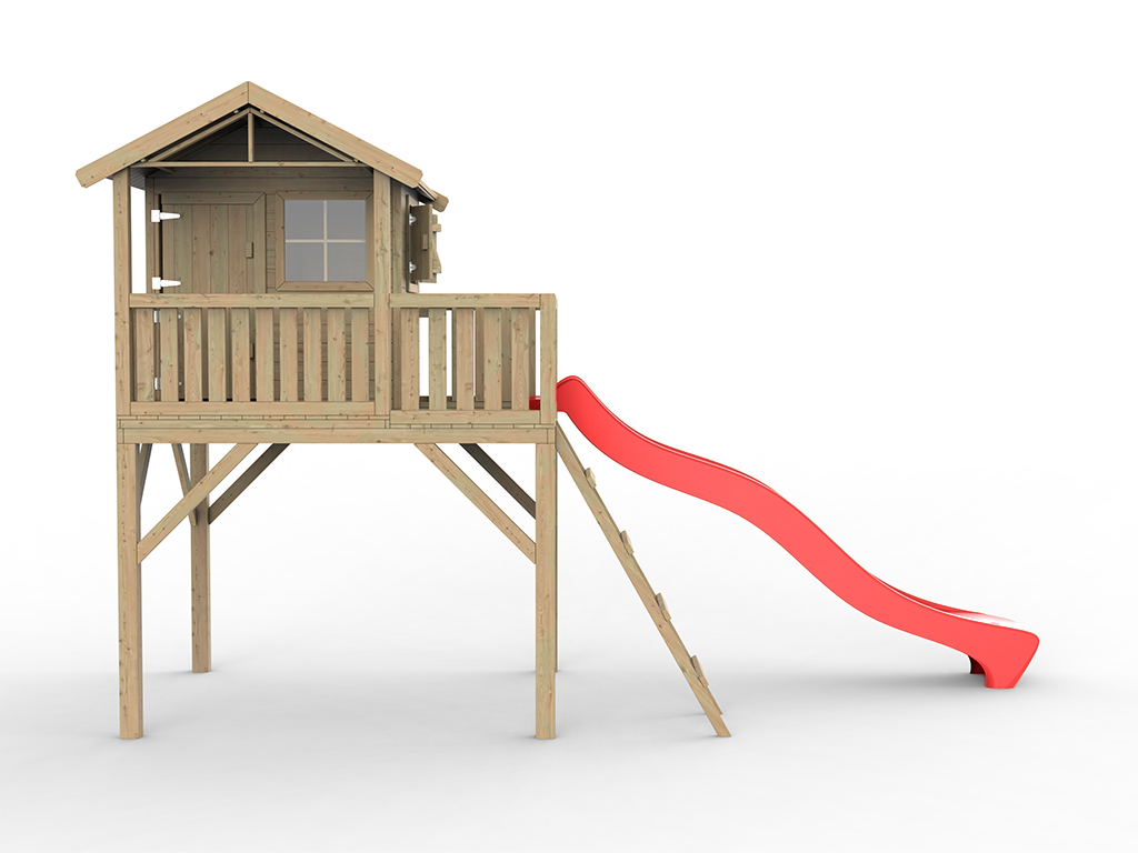 | Contenu de la livraison: | Maisonnette sur pilotis Funny XXL, bac à fleurs, volets, véranda, balcon, instructions de montage détaillées, toboggan rouge |