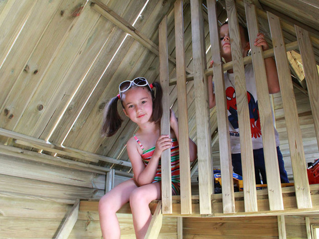 Cette cabane sur pilotis avec plateforme de 120 cm et mezzanine garantit des heures de jeu inoubliables pour vos enfants.