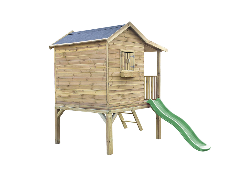 Prestige Garden SET ÉCONOMIQUE Cabane de jardin sur pilotis Saloon XL imprégnée en autoclave avec toboggan et plate-forme inclus.