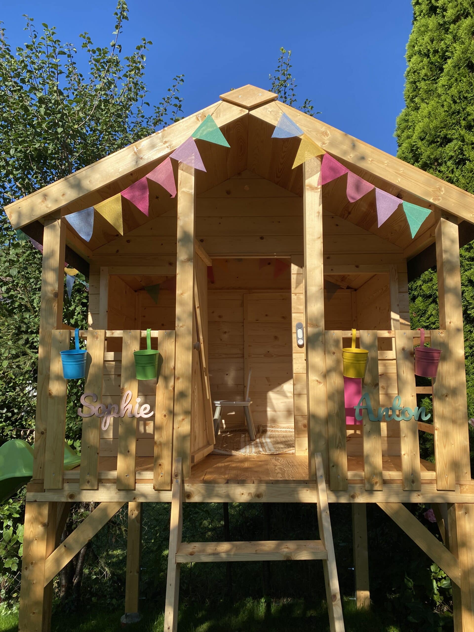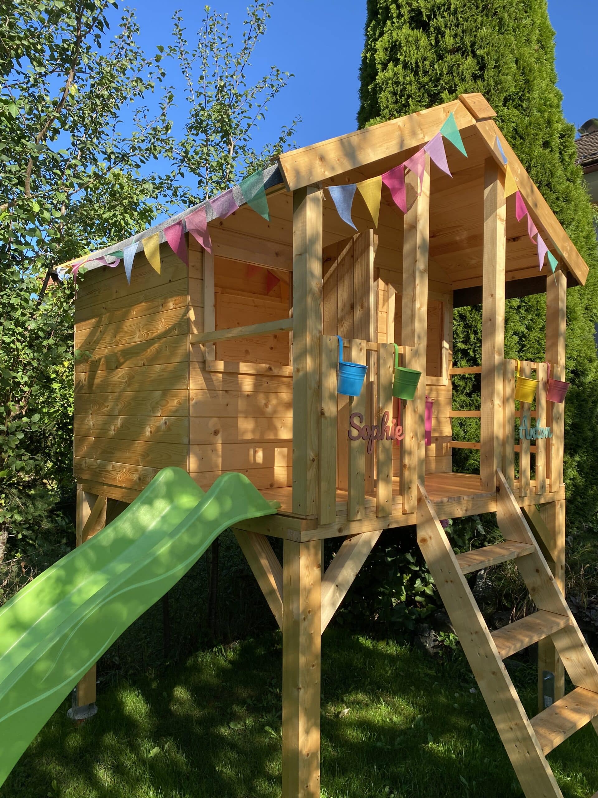 Superbe cabane de jardin sur pilotis incl. toboggan à vagues.