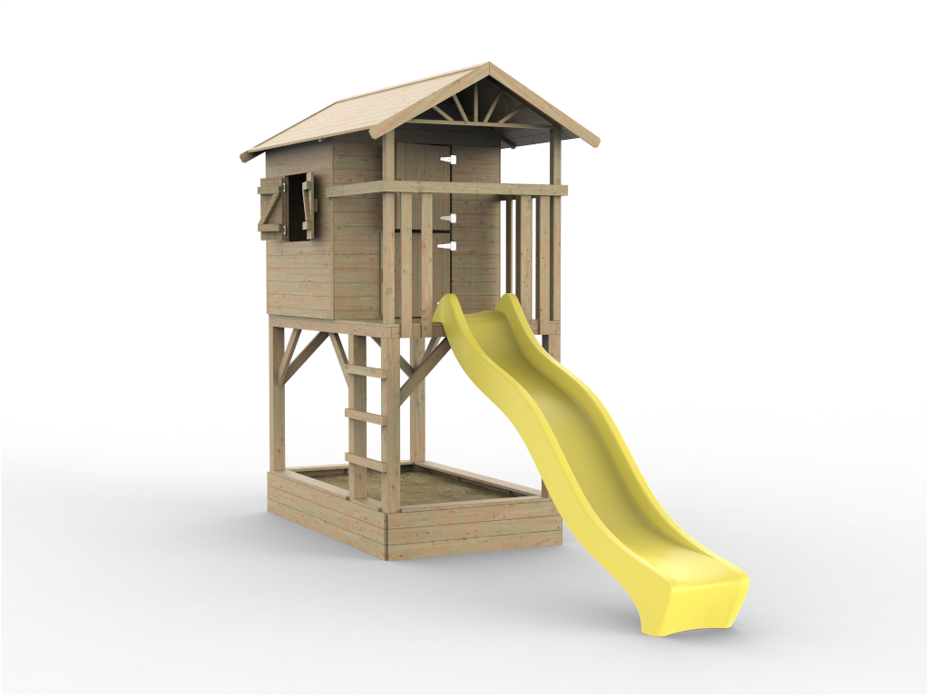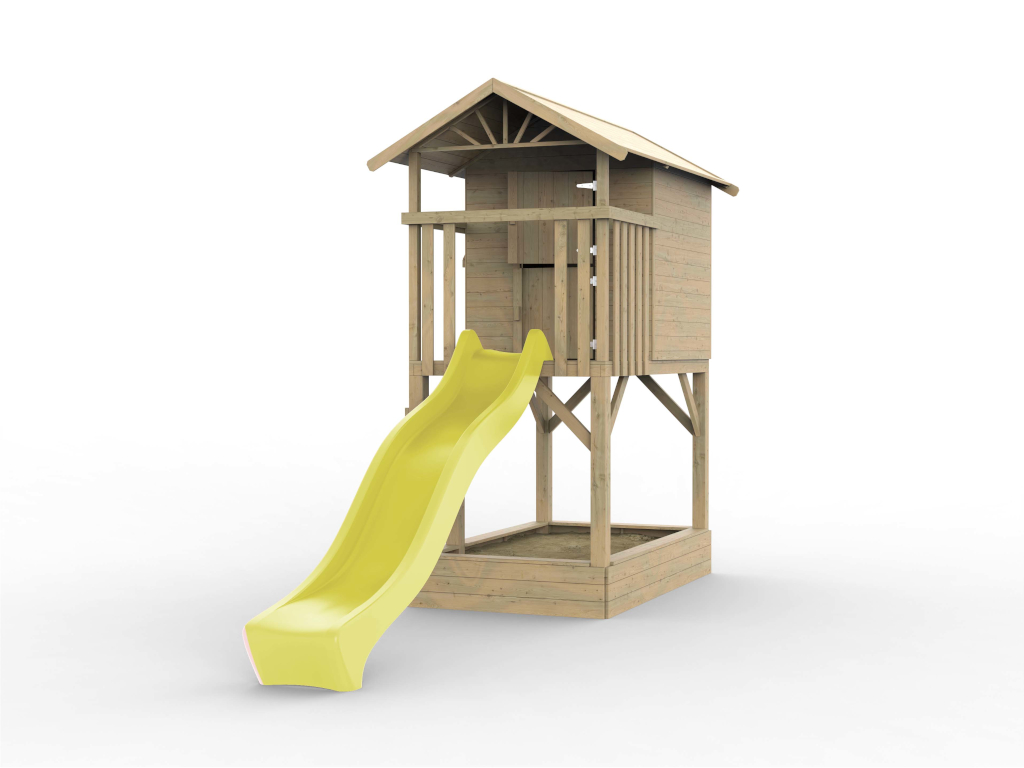 Commentaires client pour "Cabane de jardin sur pilotis Tree Hut KDI avec bac à sable y compris toboggan jaune"