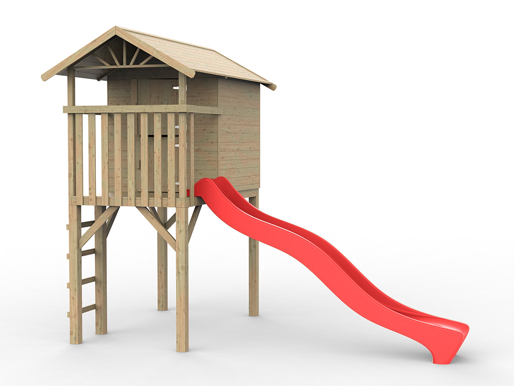 | Contenu de la livraison: | Maisonnette sur pilotis Tree Hut, échelle, volets, véranda, poignée, instructions de montage détaillées, toboggan rouge |