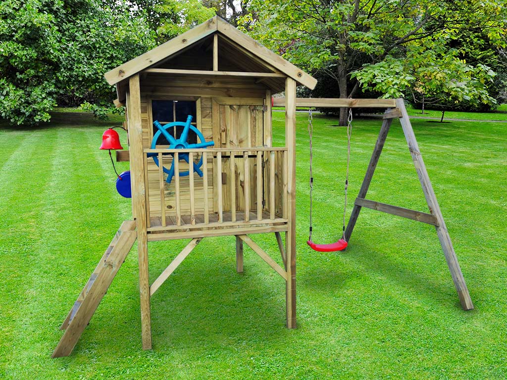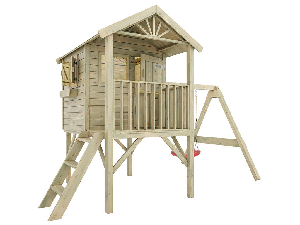 Cabane enfants sur pilotis Funny XL KDI avec extension balançoire
