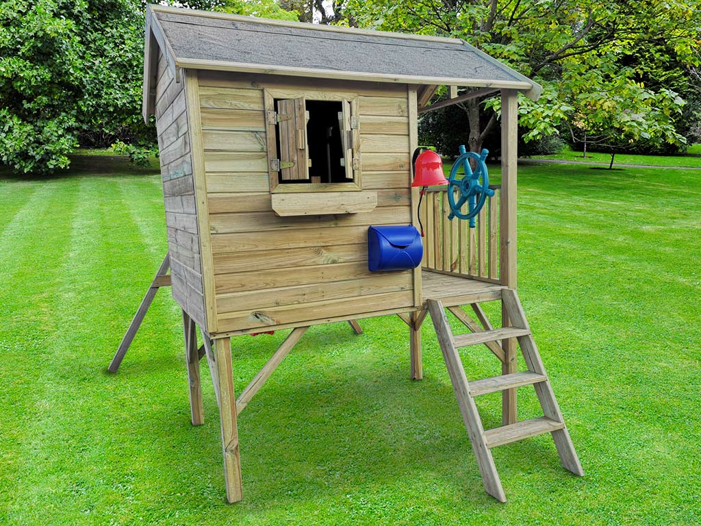 Kit économique Prestige Garden Cabane enfants sur pilotis Funny XL imprégnée en autoclave, avec portique intégré