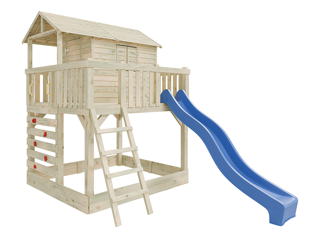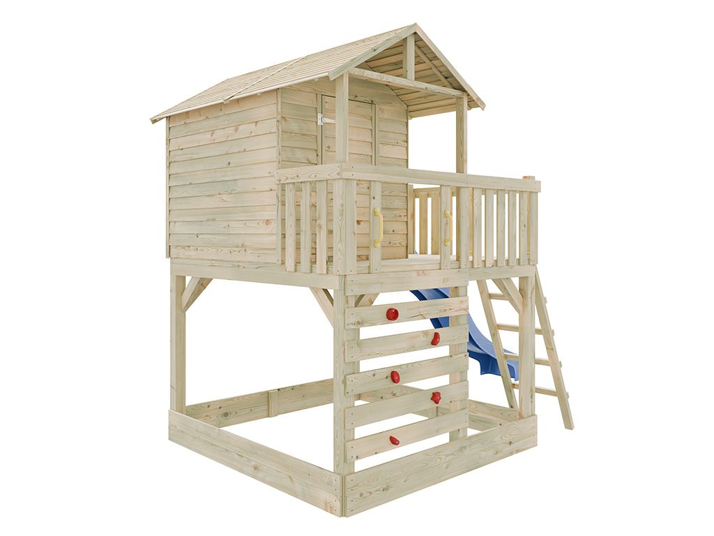 Commentaires client pour "Cabane sur pilotis en bois autoclave avec toboggan bleu Noah"