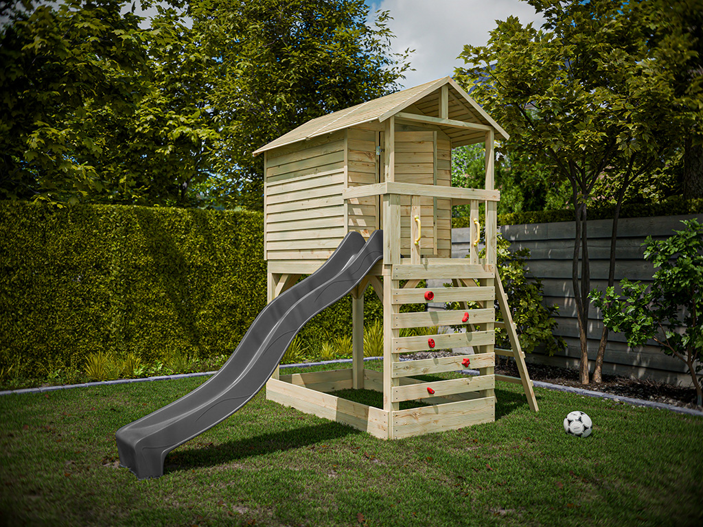 Cabane sur pilotis en bois autoclave avec toboggan gris Luis