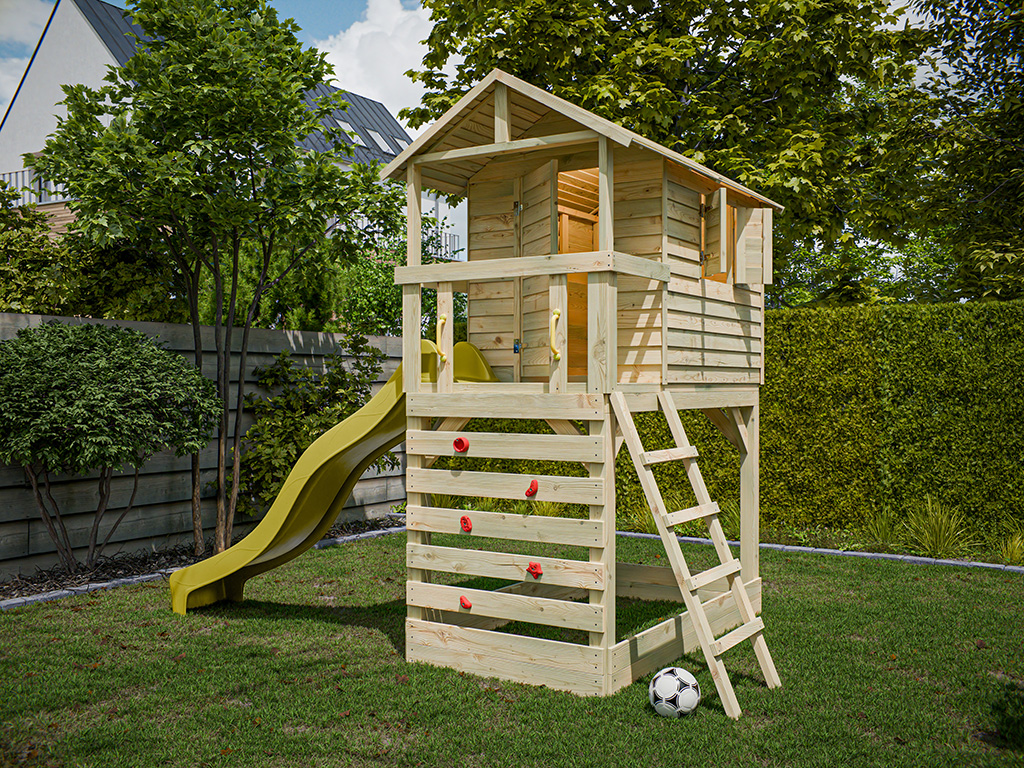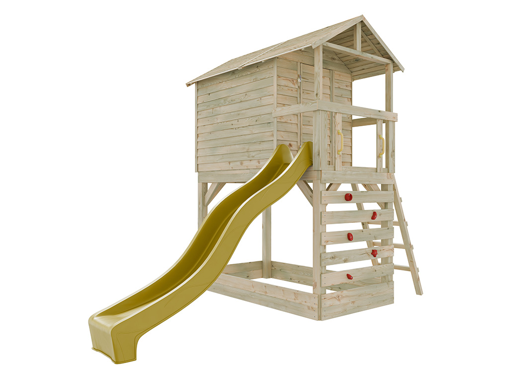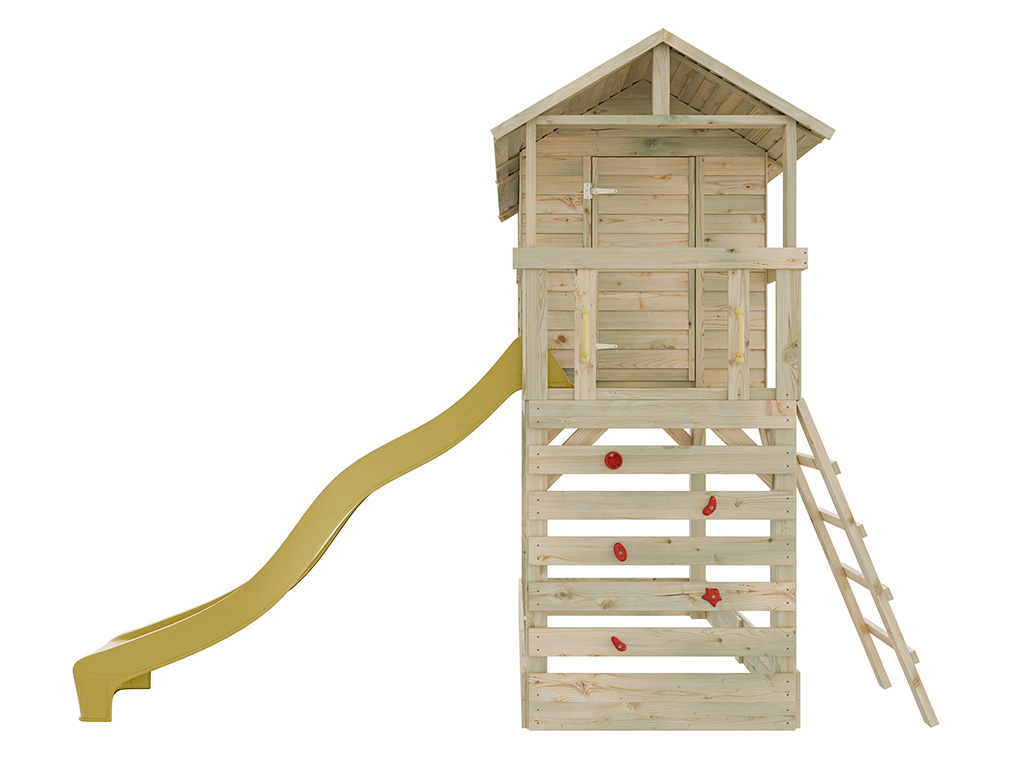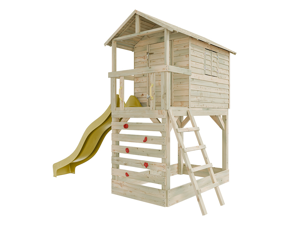 Cabane sur pilotis en bois autoclave avec toboggan jaune Luis