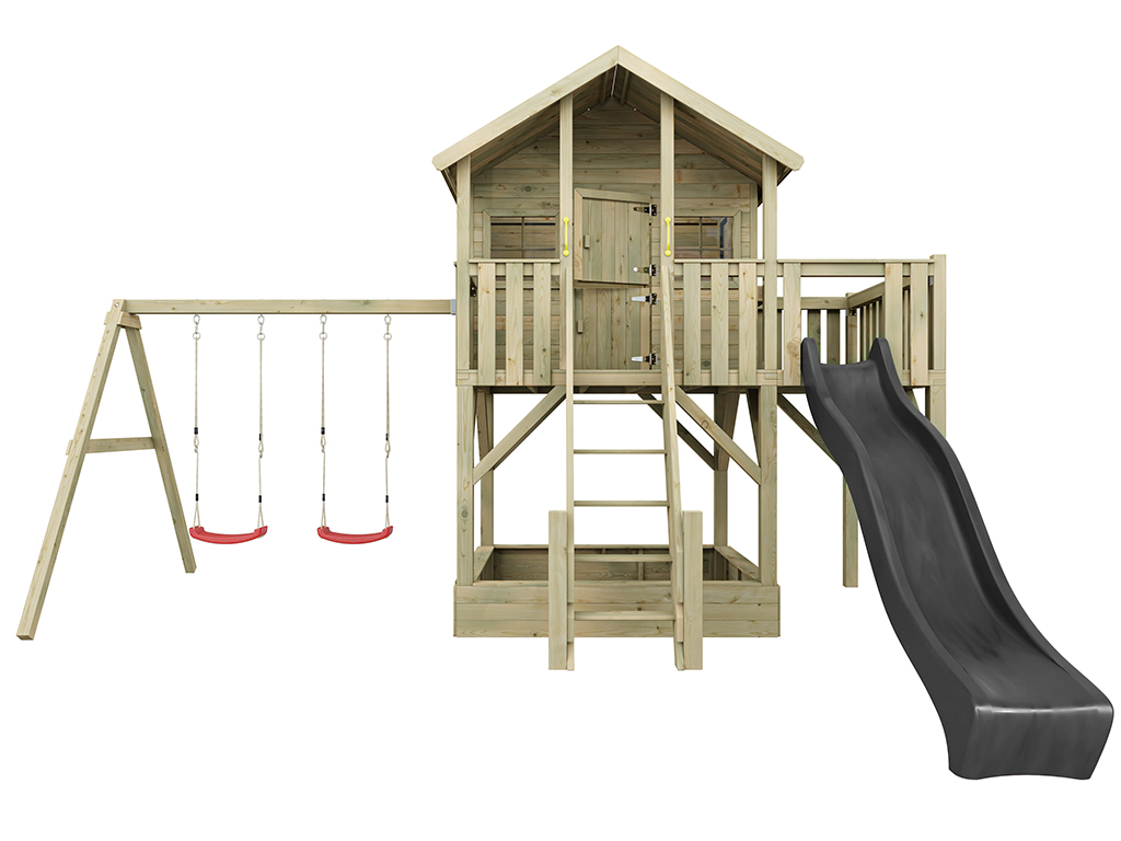 Cabane sur pilotis en bois autoclave Big House XL avec portique double et toboggan gris