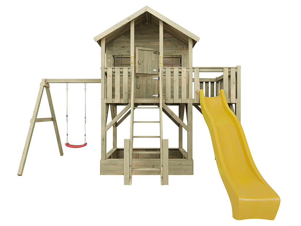 Cabane sur pilotis en bois autoclave “Big House XL” avec balançoire simple et toboggan jaune...plus