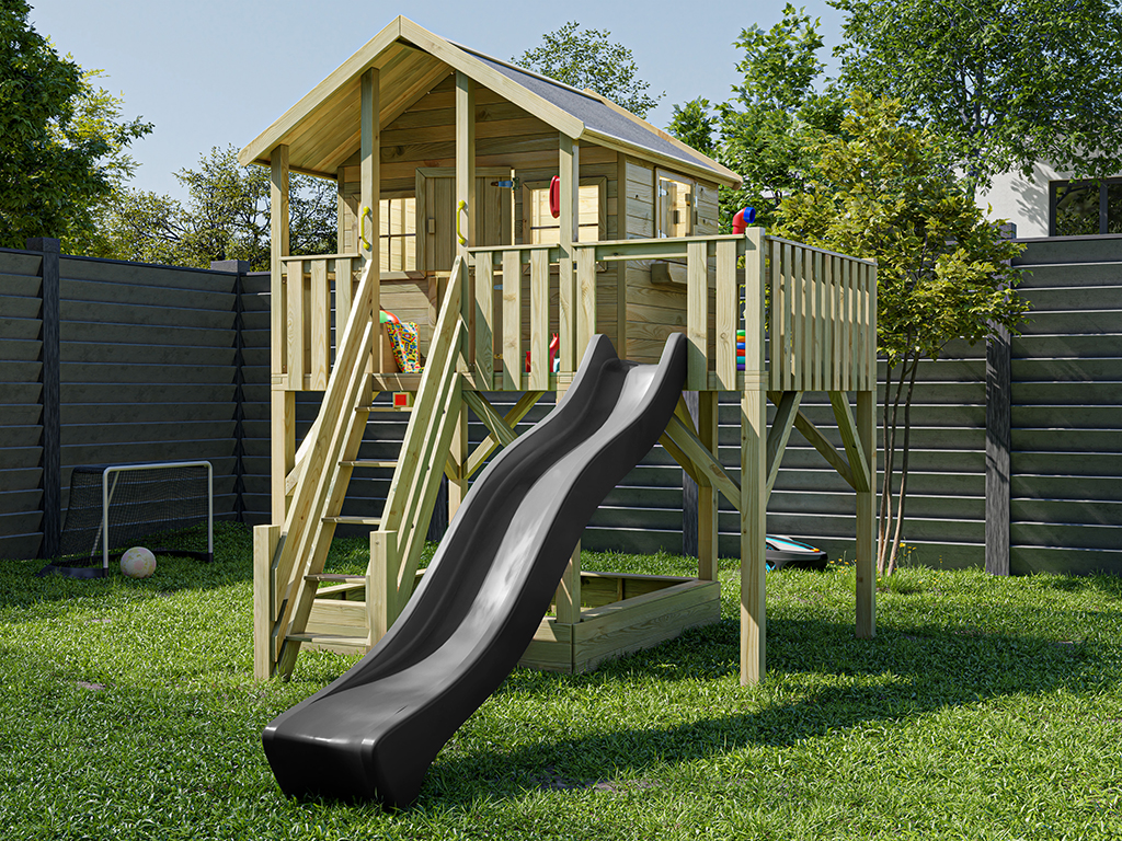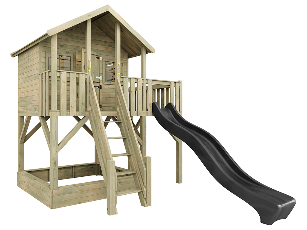 Cabane sur pilotis en bois autoclave Big House XL avec toboggan gris