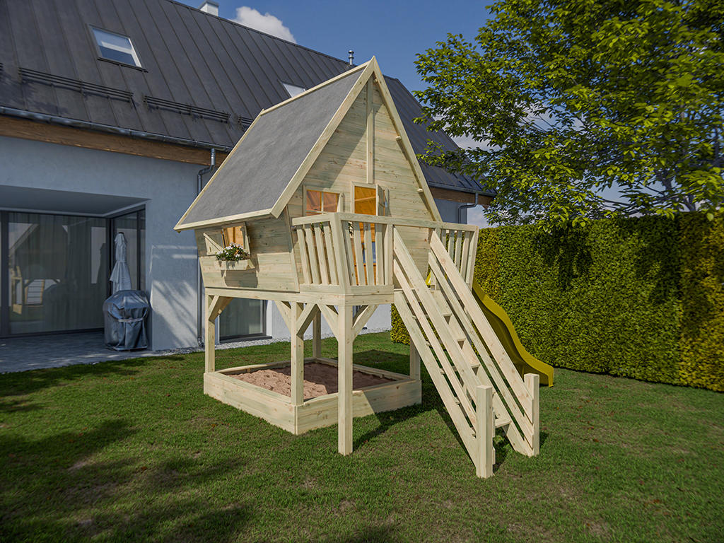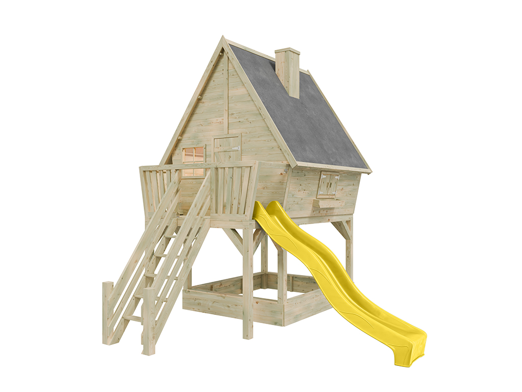 Cabane sur pilotis en bois autoclave Clubhouse avec toboggan jaune