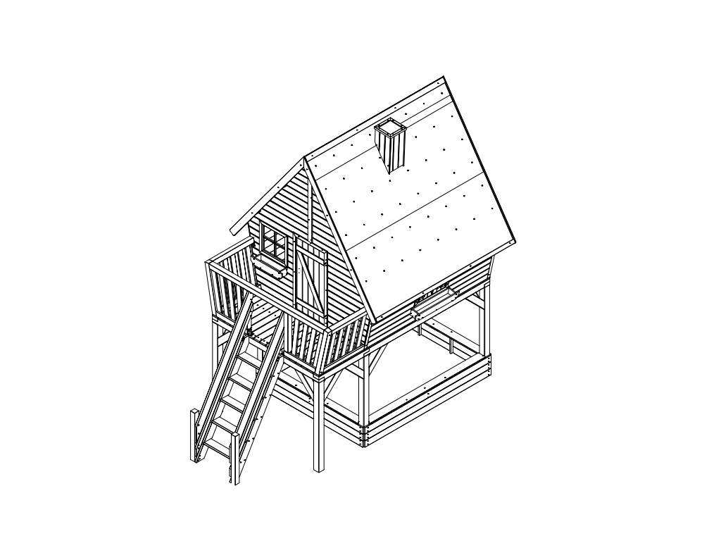 Cette cabane sur pilotis est fabriquée en bois de pin autoclave profilé, ce qui la rend particulièrement résistante aux intempéries. Les planches du toit et du plancher font 19 mm d'épaisseur, et les poteaux de support robustes mesurent 9 x 9 cm, garantissant une stabilité optimale. Nous recommandons une fixation sécurisée avec des ancrages au sol. Le toit solide est livré avec du carton bitumé. Pour une durabilité accrue et un aspect esthétique encore meilleur, nous vous conseillons de le recouvrir de bardeaux colorés ou d'une membrane de toiture autoadhésive. Consultez notre gamme d’accessoires à cet effet. - Avec fenêtres et jardinières