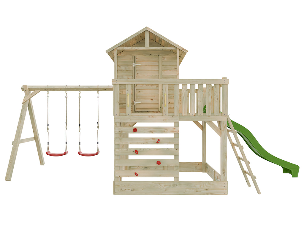 Commentaires client pour "Cabane sur pilotis en bois autoclave Noah avec portique double et toboggan vert"