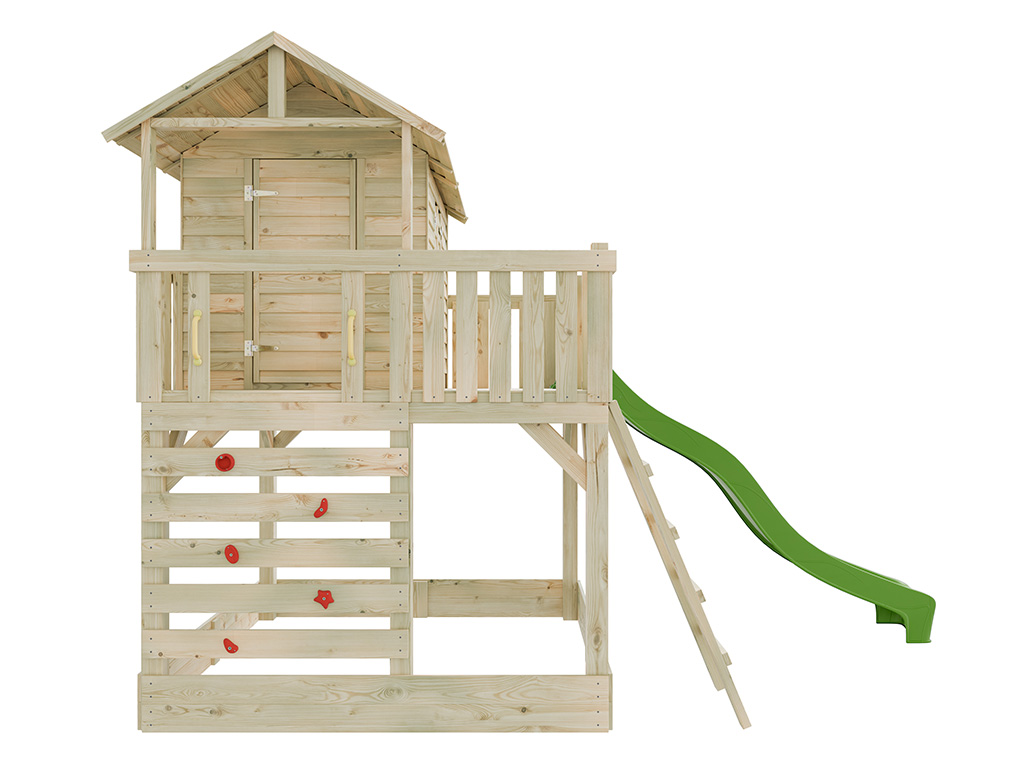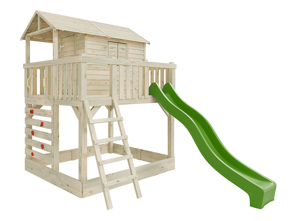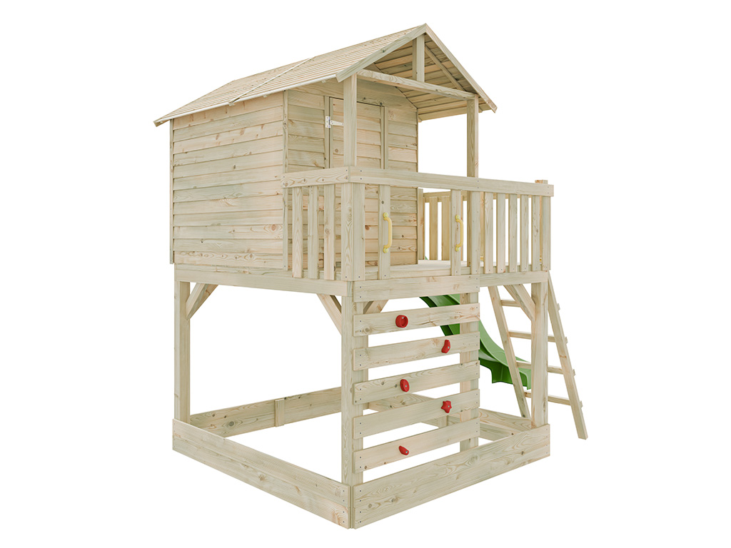 Cabane sur pilotis en bois autoclave Noah avec toboggan vert