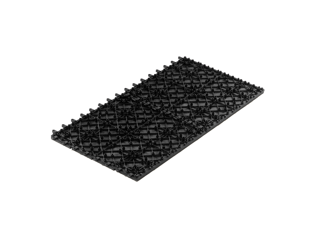 Le sol est très facile à installer et à démonter. Les dalles sont montées sur une grille de support en plastique et sont simplement emboîtées les unes dans les autres.