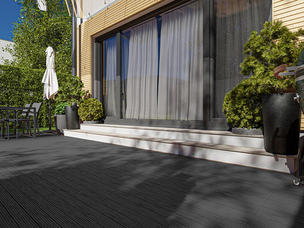 Carreau de terrasse WPC gris foncé strié