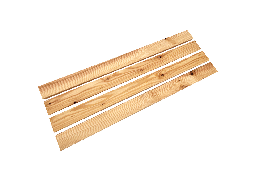 Cette sélection peut comporter de petits défauts du bois et des trous de nœuds, ainsi que de légères erreurs de rabotage, fissures, écarts dimensionnels, légère courbure ou dilatation. Le produit a été trié selon le côté visible souhaité après traitement. Les dommages techniques ont été principalement éliminés. Des défauts du bois, des caractéristiques typiques du bois comme les nœuds et les galeries de résine, ainsi que des fissures en bout et en surface peuvent être présents.