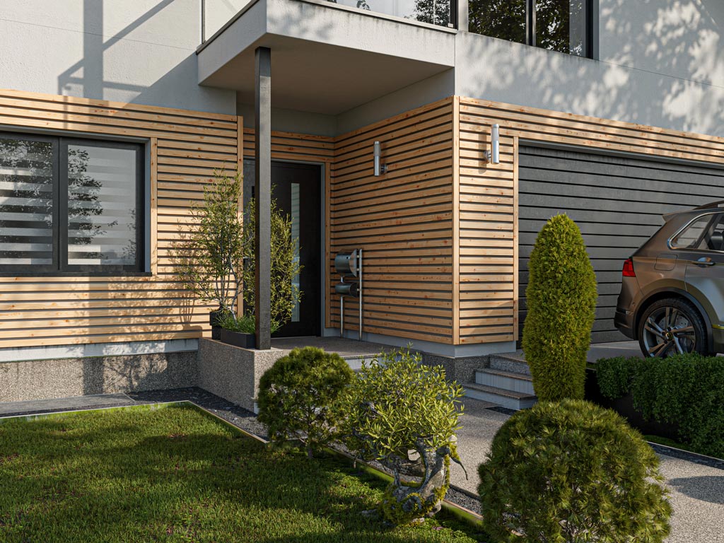 Les façades en bois s'avèrent être un revêtement idéal, car elles offrent une protection durable contre les intempéries, même pendant des décennies.