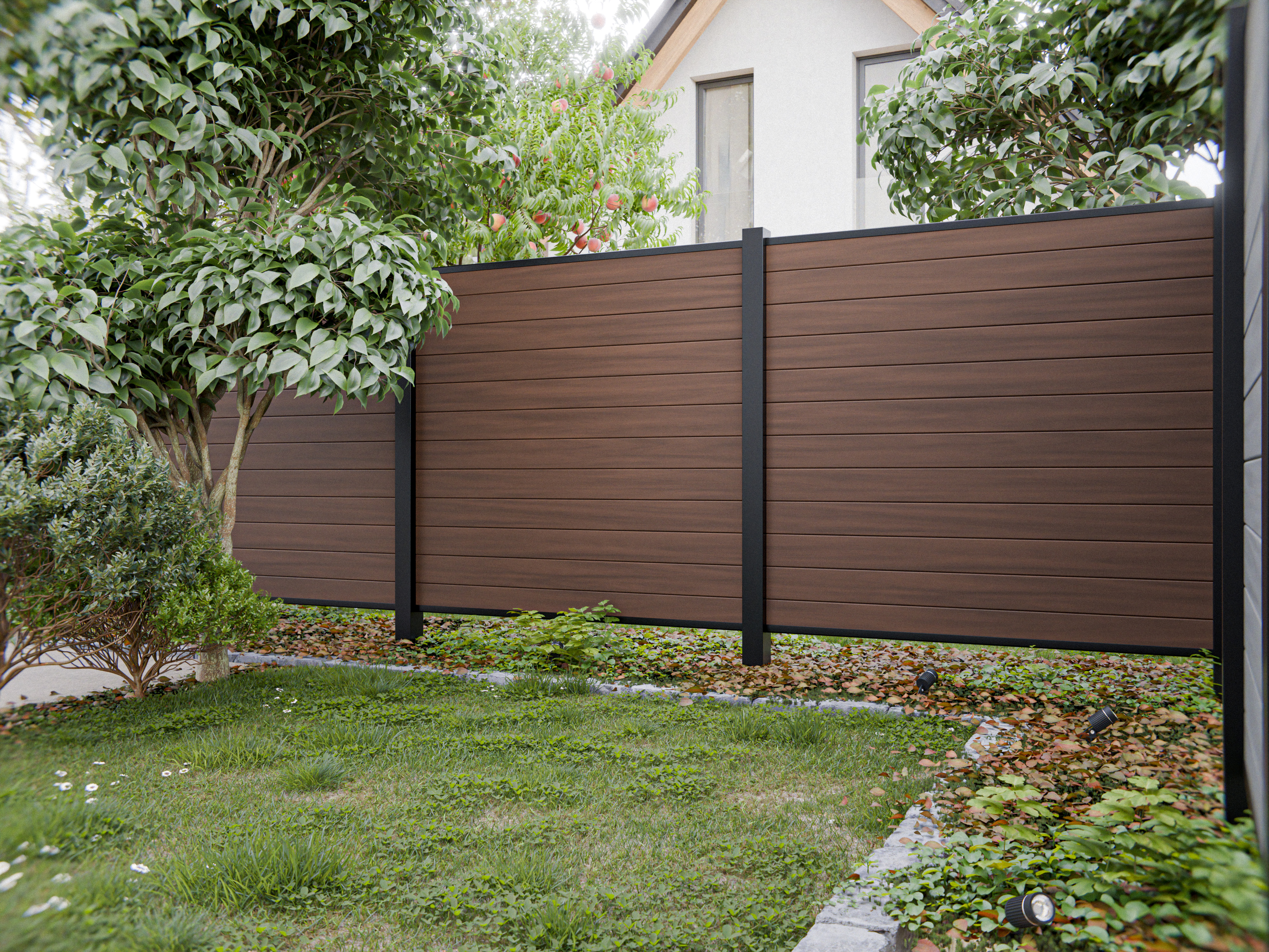 Clôture de jardin, clôture pare-vue, système d'emboîtage en PVC, Brown Oak