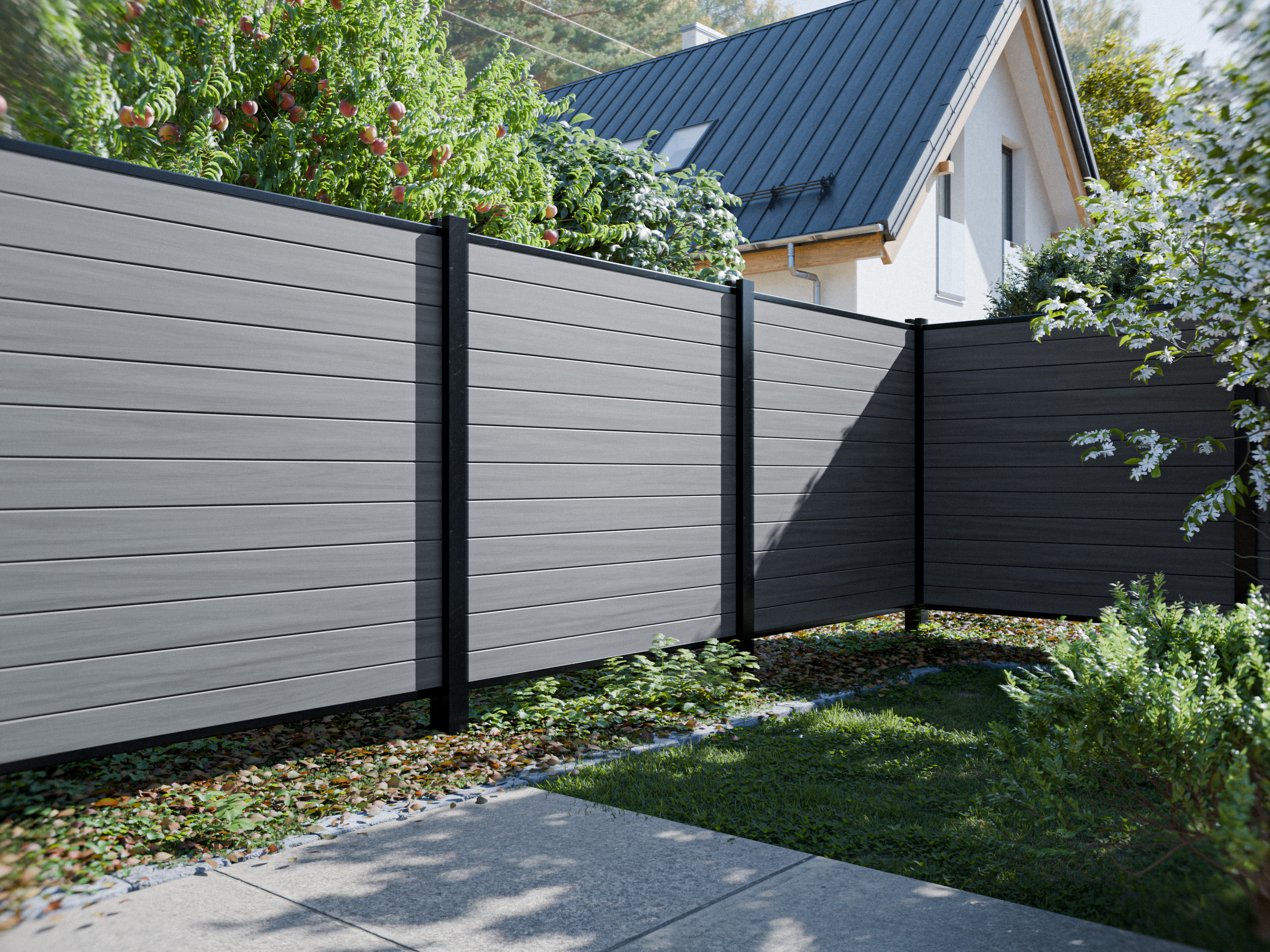 Clôture de jardin, clôture pare-vue, système d'emboîtage en PVC, Grey Oak