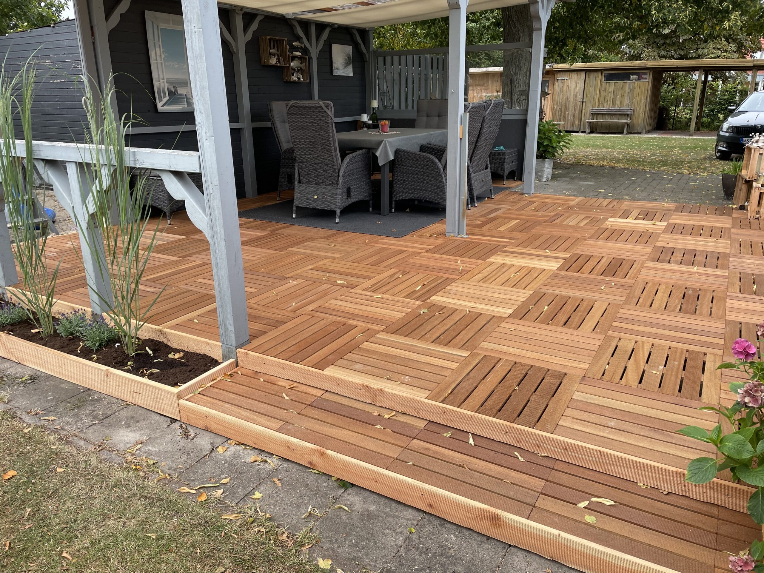 car le bangkirai est dur et donc un très bon bois de construction. - 4 dalles sont nécessaires par m²..
