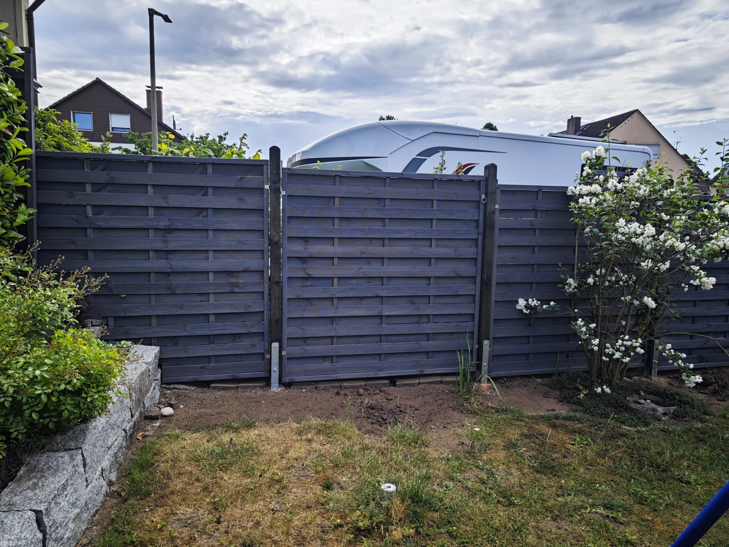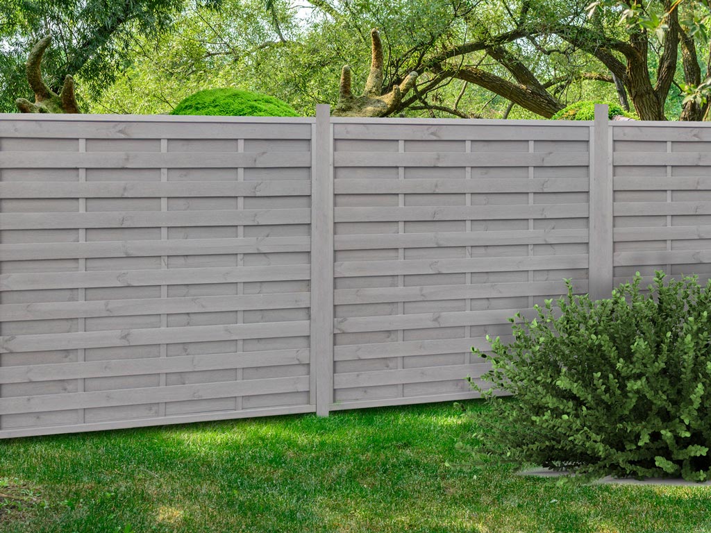 La clôture pare-vue est pré-lasée en gris, ce qui lui confère non seulement une belle couleur mais aussi une protection contre les intempéries. - Équipement