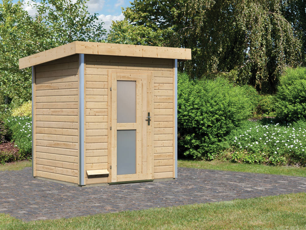 Sauna extérieur KARIBU Jorgen avec porte moderne brut / non traité sans poêle