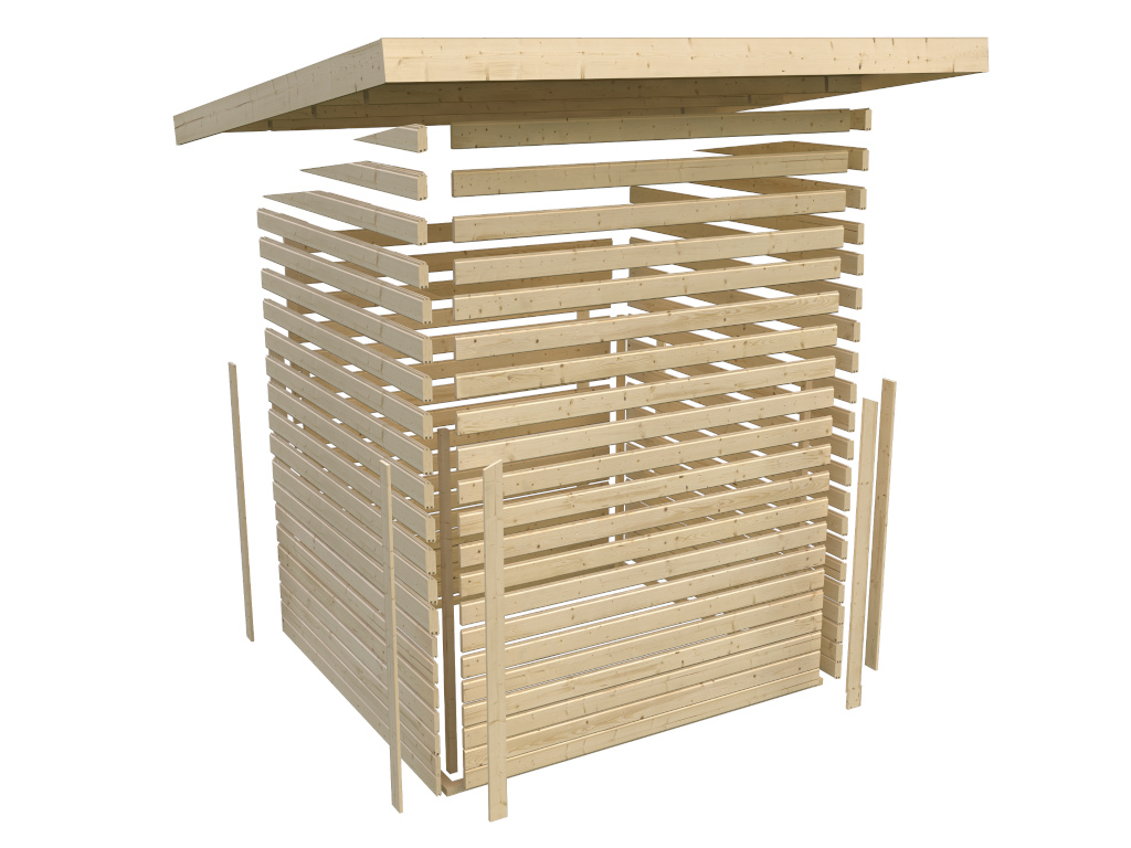 | Dimensions extérieures avec débord de toit (l x P): | 231 x 196 cm |