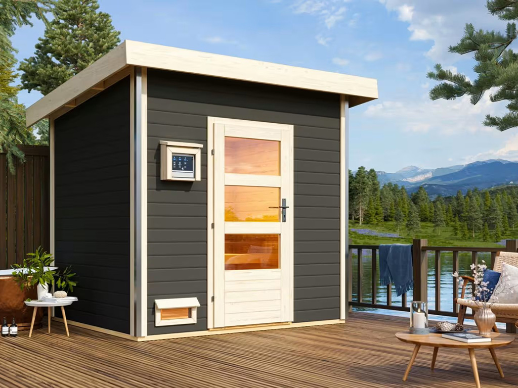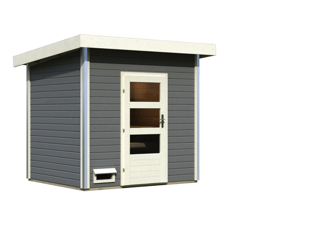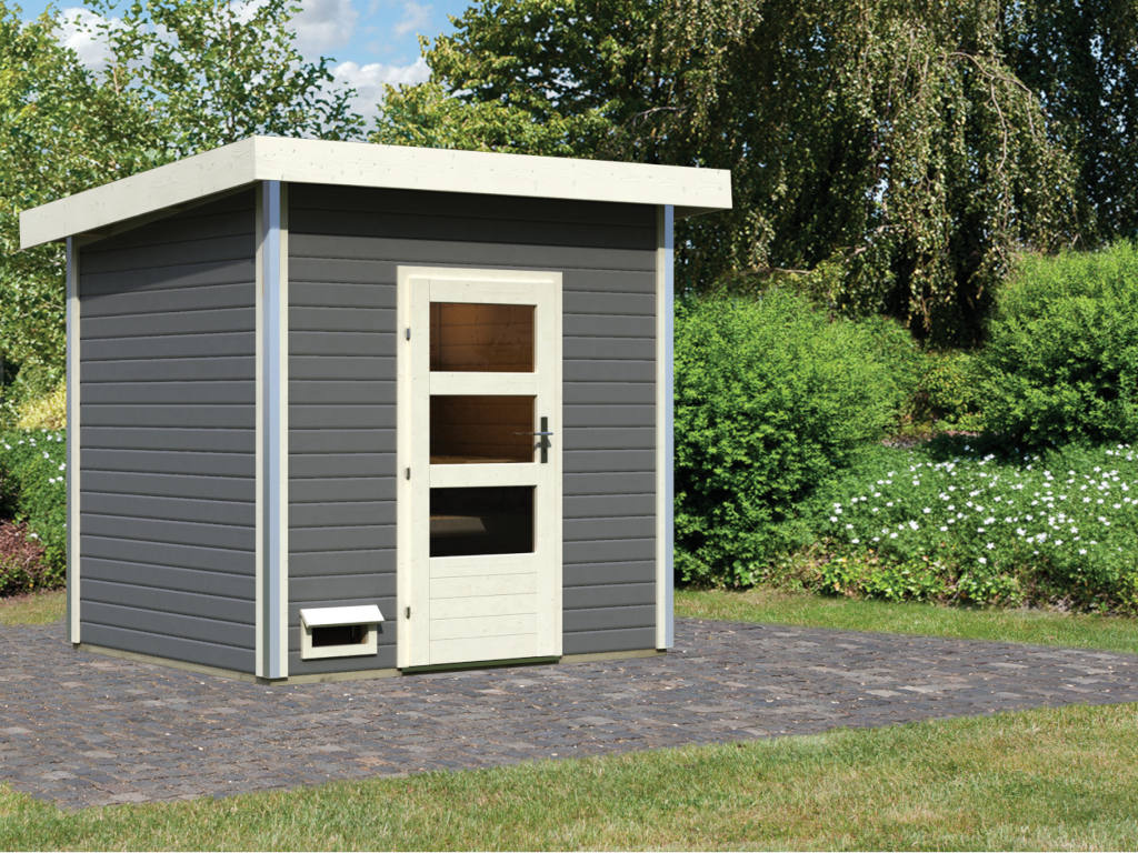 Sauna extérieur KARIBU « Norge » 38 mm avec porte moderne gris terre