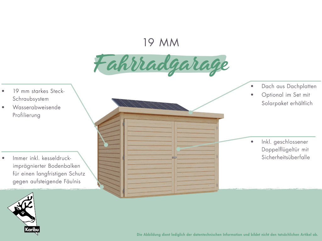 Dans cette Bikebox, votre vélo est parfaitement protégé – à l’abri du vent, des intempéries et, grâce au loquet de sécurité, également contre le vol. Grâce au système d’assemblage par emboîtement et vissage, le montage et le démontage sont particulièrement simples et rapides.