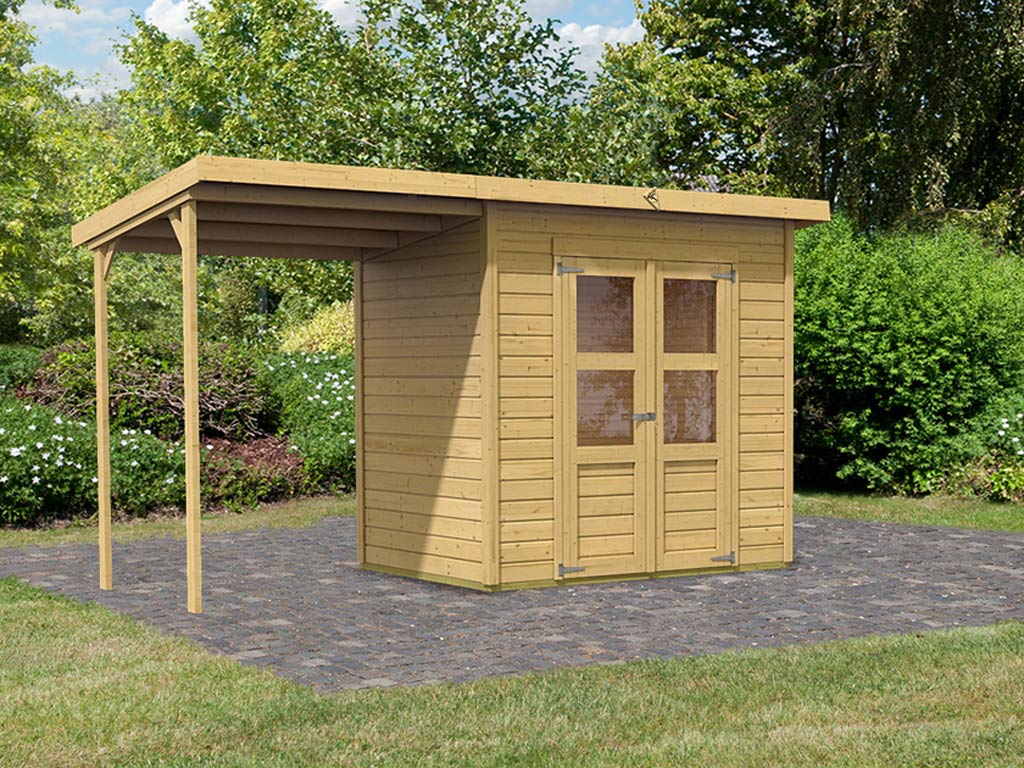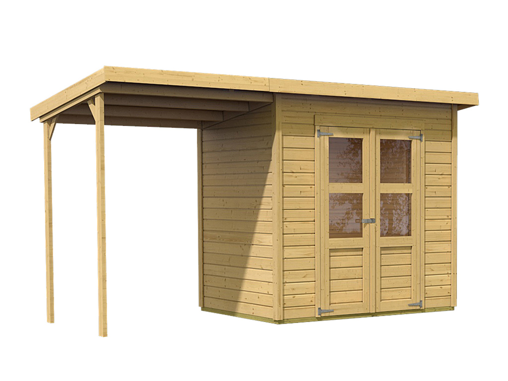 Abri de jardin Livo 2 28 mm naturel avec extension de 264 cm Abri de jardin Livo 2 28 mm naturel avec...