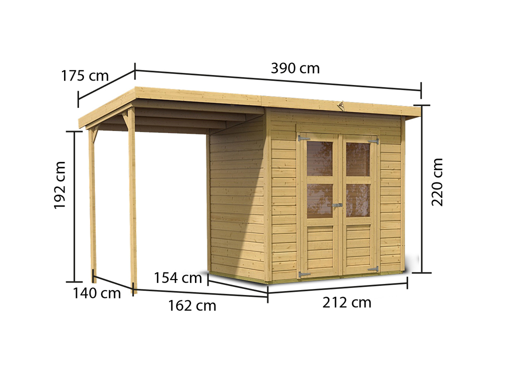 Dimensions extérieures avec débord de toit (l x P): 390 x 175 cm