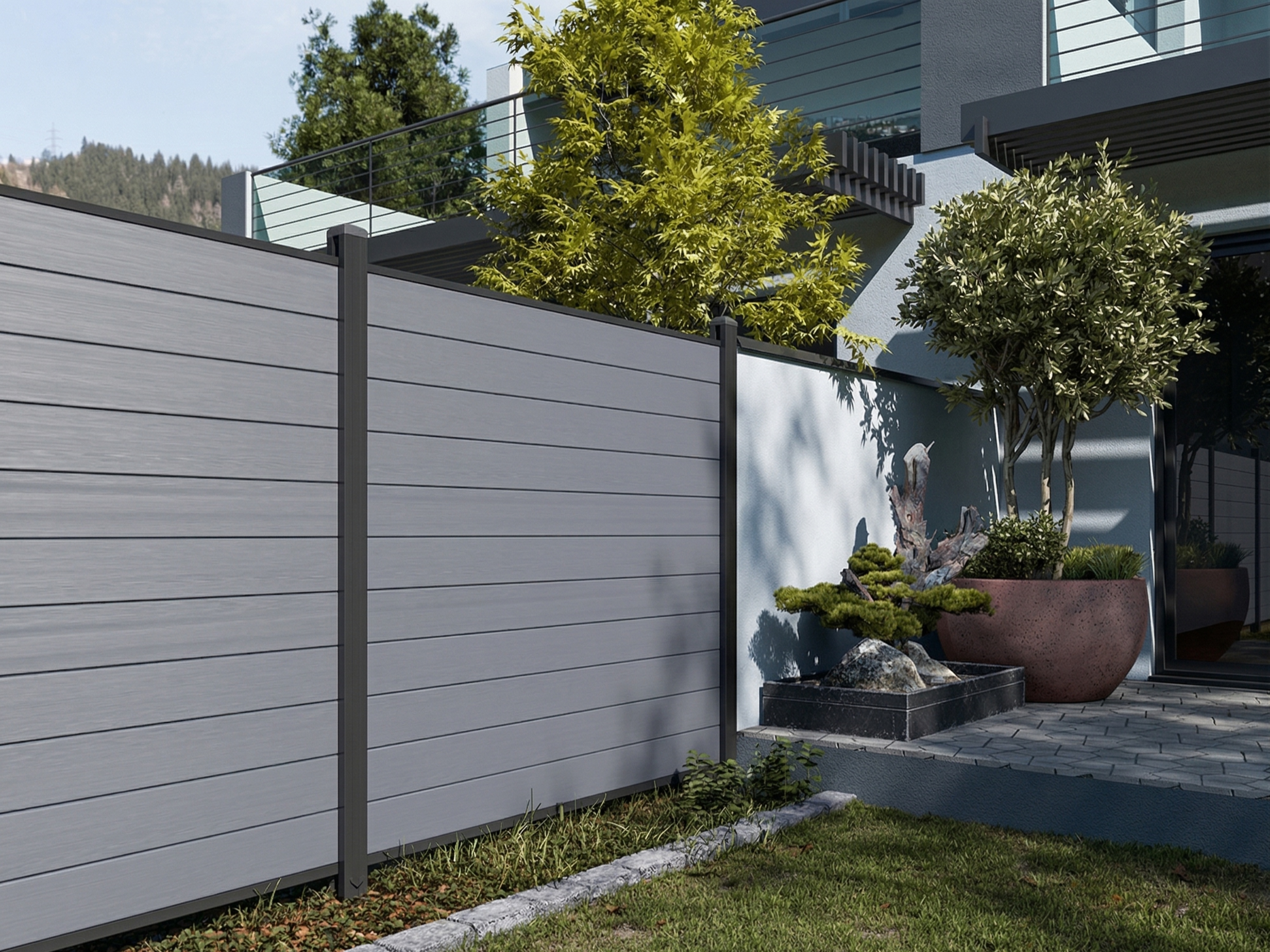 La clôture est fournie sous forme de kit composé de lames à composer et d'accessoires de fixation. Les éléments individuels sont simplement insérés dans les poteaux appropriés. La hauteur et la largeur des lames à composer peuvent être personnalisées et découpées selon les besoins. Les composants de la clôture à composer sont disponibles séparément en tant que produits et peuvent être combinés à volonté. - Un matériau durable